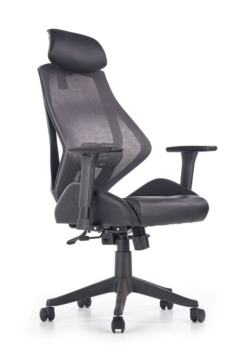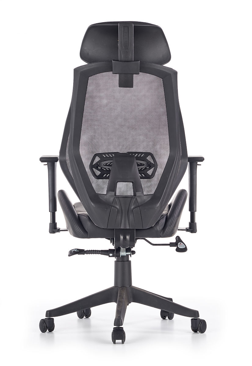 Mehanizem Multiblock ponuja možnost zibanja, katerega trdoto lahko sami prilagodite. Ergonomsko oblikovano naslonjalo in vzglavnik sta oblečena v zračno mrežico, sedež stola pa je oblazinjen z eko usnjem v črni barvi. Naslonjalo je dodatno opremljeno z ledveno oporo, ki zagotavlja zdravo sedenje skupaj z nastavljivimi naslonjali za roke. Konstrukcija je izdelana iz trdne plastike.