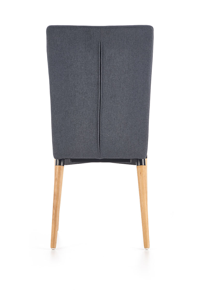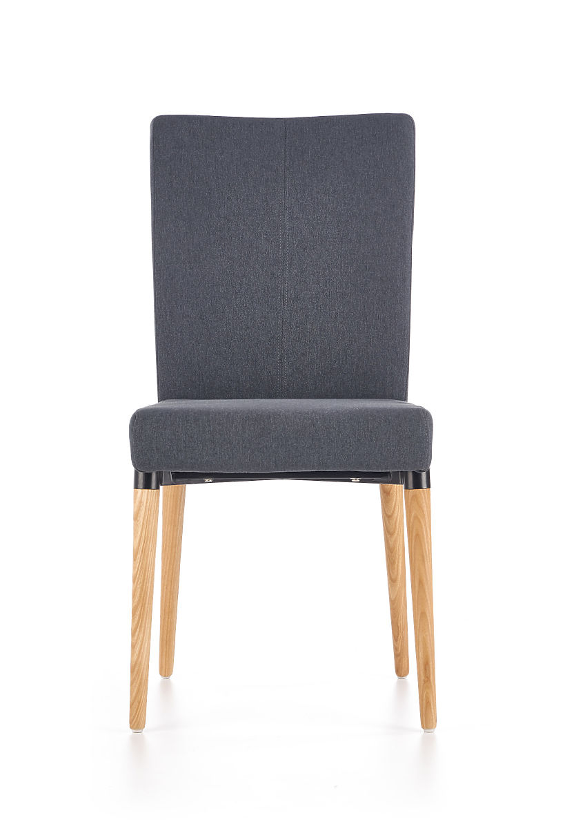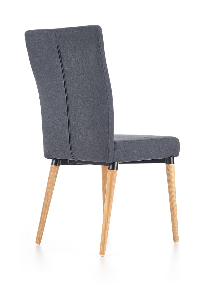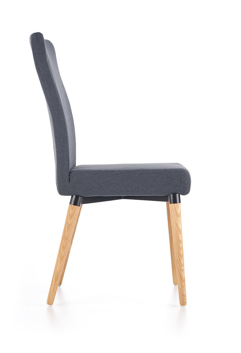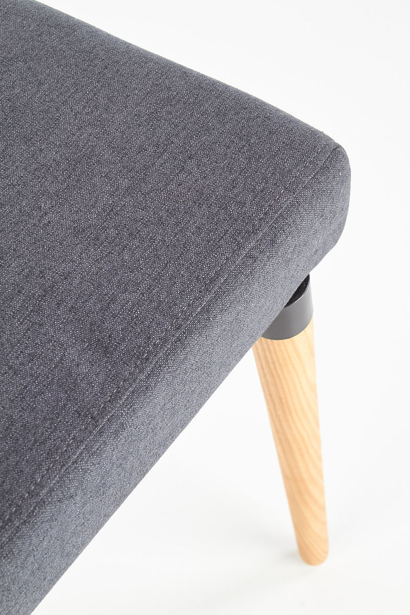 Sodoben jedilni stol K273 s temno sivo tkanino in lesenimi nogami. .. več