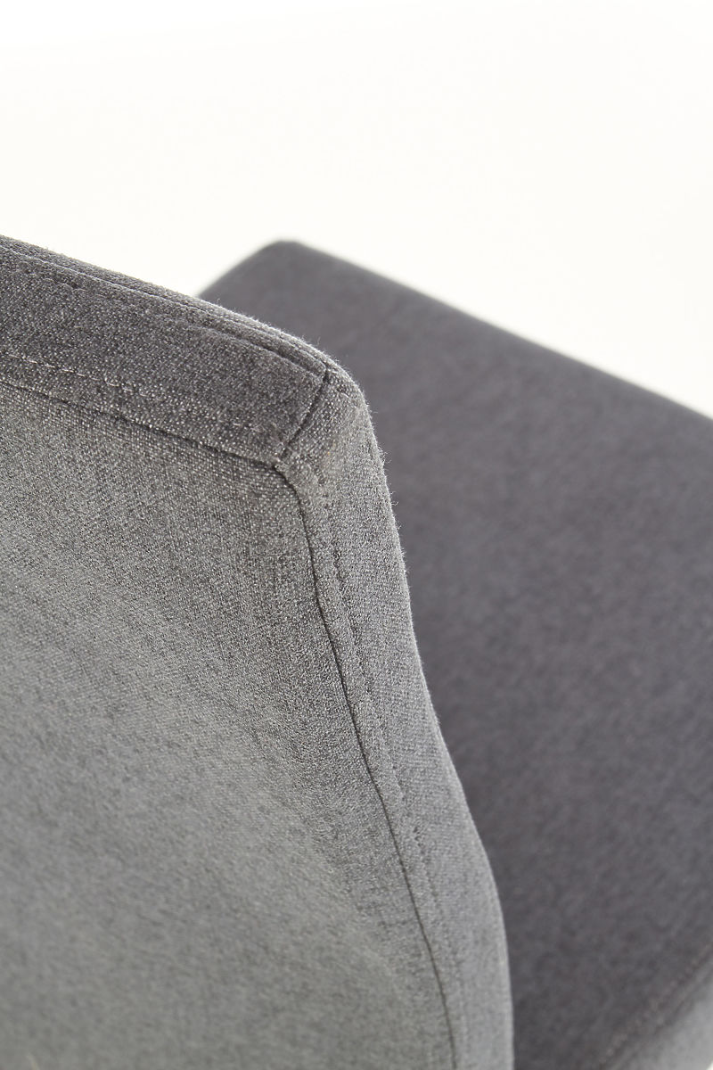 Stol je oblazinjen z vzdržljivo tkanino temno sive barve, ki je prijetna na dotik. Noge stola so izdelane iz masivnega lesa.