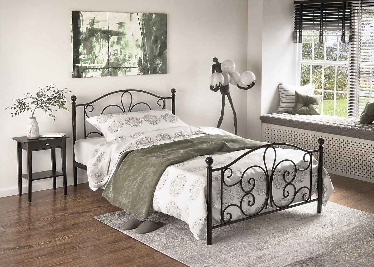 Črna kovinska postelja Panama v velikosti 120x200 cm je elegantna, moderna in elegantna, zanimivega dizajna in je zaradi svojih dimenzij primerna ne samo za študentsko sobo , temveč tudi za spalnico .