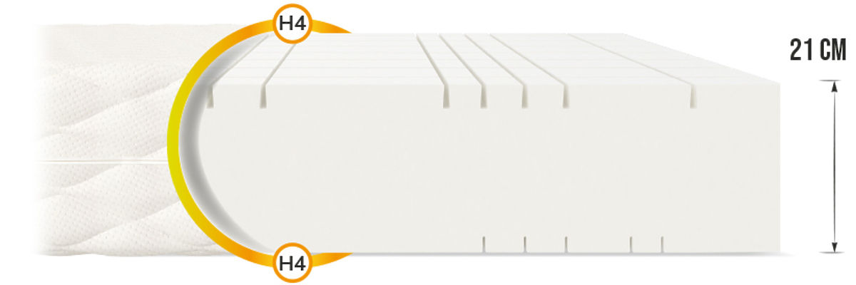 Če iščete kakovostno dvostransko vzmetnico, je vzmetnica Goya Max z višino 21 cm zagotovo prava izbira! Vzmetnica iz pene je zaradi vrste vzdolžnih in prečnih prerezov razdeljena na 7 con. Tako se znatno poveča plastičnost, ki zagotavlja odlično podporo hrbtenici.