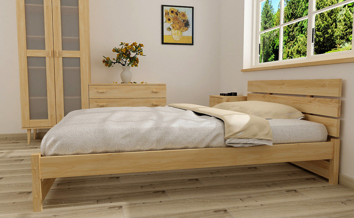 Lesena postelja Max 200 x 120 cm v naravni izvedbi z elegantnim sodobnim dizajnom. .. več