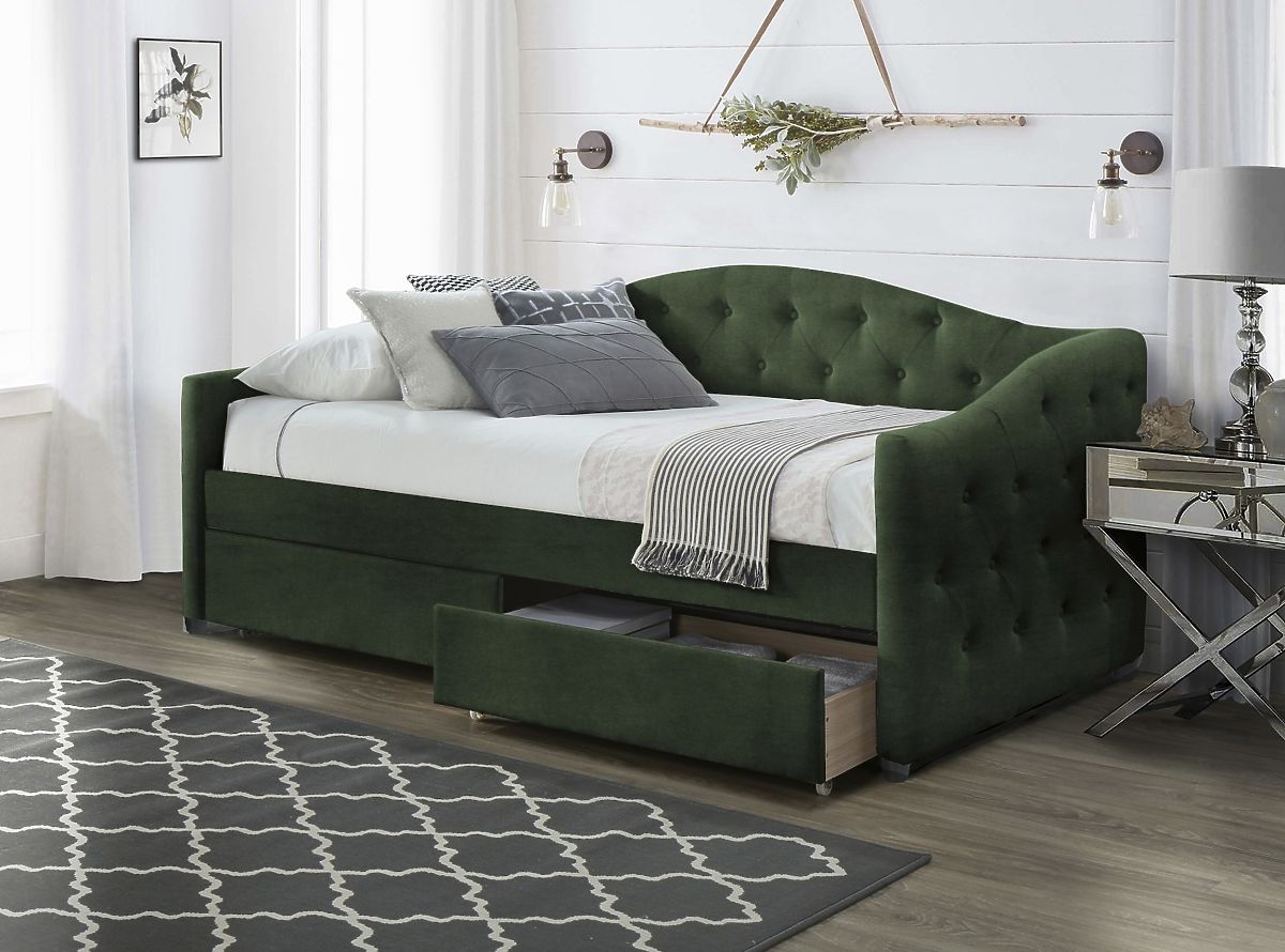 Lukahome.si » Postelje / Enojne postelje / Oblazinjena postelja s predali ALOHA 90 x 200 cm - Temno zelena