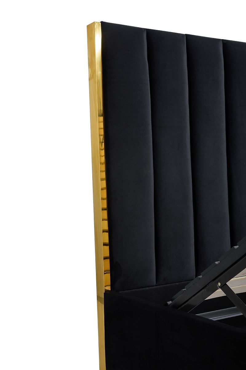 Oblazinjena postelja PALAZZO je kombinacija luksuza in praktičnosti. Z dimenzijami 160 x 200 cm zagotavlja dovolj prostora za udobno spanje dveh oseb, poleg tega pa ponuja tudi skrit prostor za shranjevanje zahvaljujoč dvižni mreži. Črno oblazinjenje postelje Palazzo doda eleganten in moderen videz vaši spalnici. Visoko vzglavje Palazzo doda razkošno vzdušje in postane privlačen element vaše notranjosti.