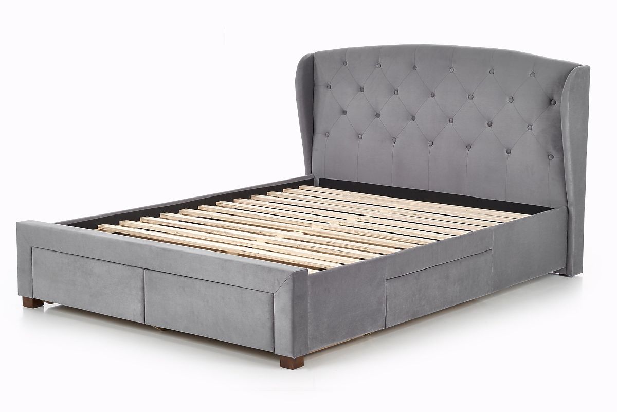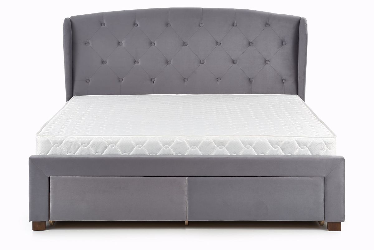 Oblazinjena postelja Sabrina v vašo spalnico vnese razkošno vzdušje in praktičnost. Z dimenzijami 160x200 cm zagotavlja dovolj prostora za udobno spanje in hkrati nudi prostor za shranjevanje zahvaljujoč integriranim predalom. Temno sivo oblazinjenje postelje Sabrina dodaja eleganten in moderen videz. Prednost je kvalitetna letvena rešetka , ki je priložena paketu.