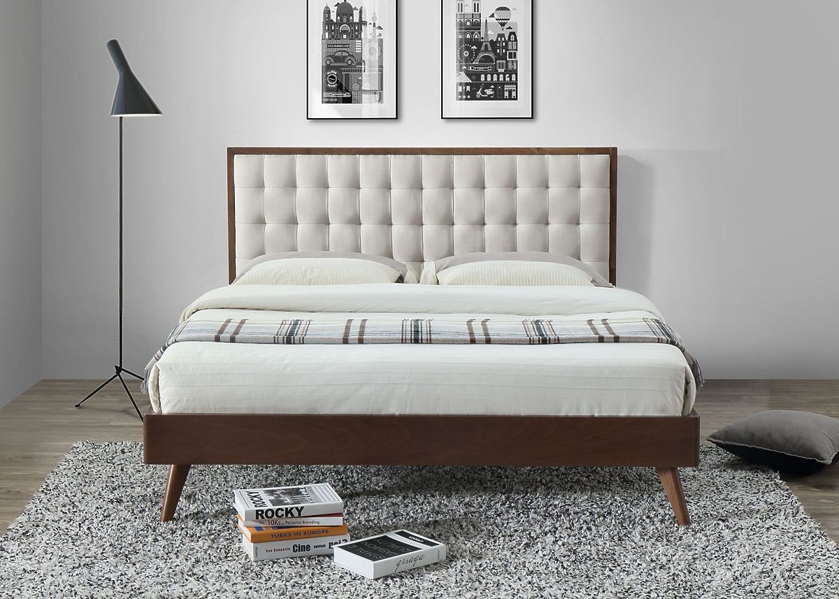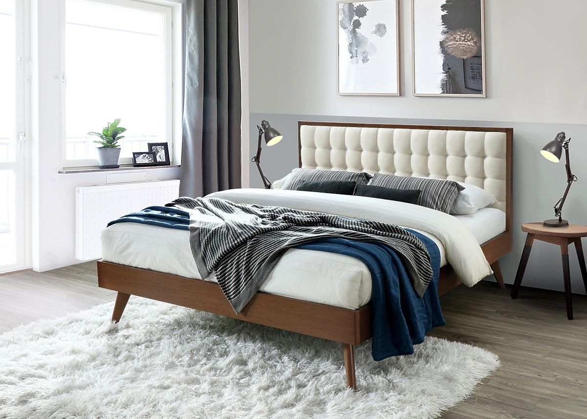 Postelja je izdelana iz kakovostnega temnega lesa, ki daje postelji naraven in topel videz. Oblazinjenje na vzglavju postelje doda udobje in eleganco. Ta kombinacija lesa in oblazinjenja je popolna utelešenje razkošja.