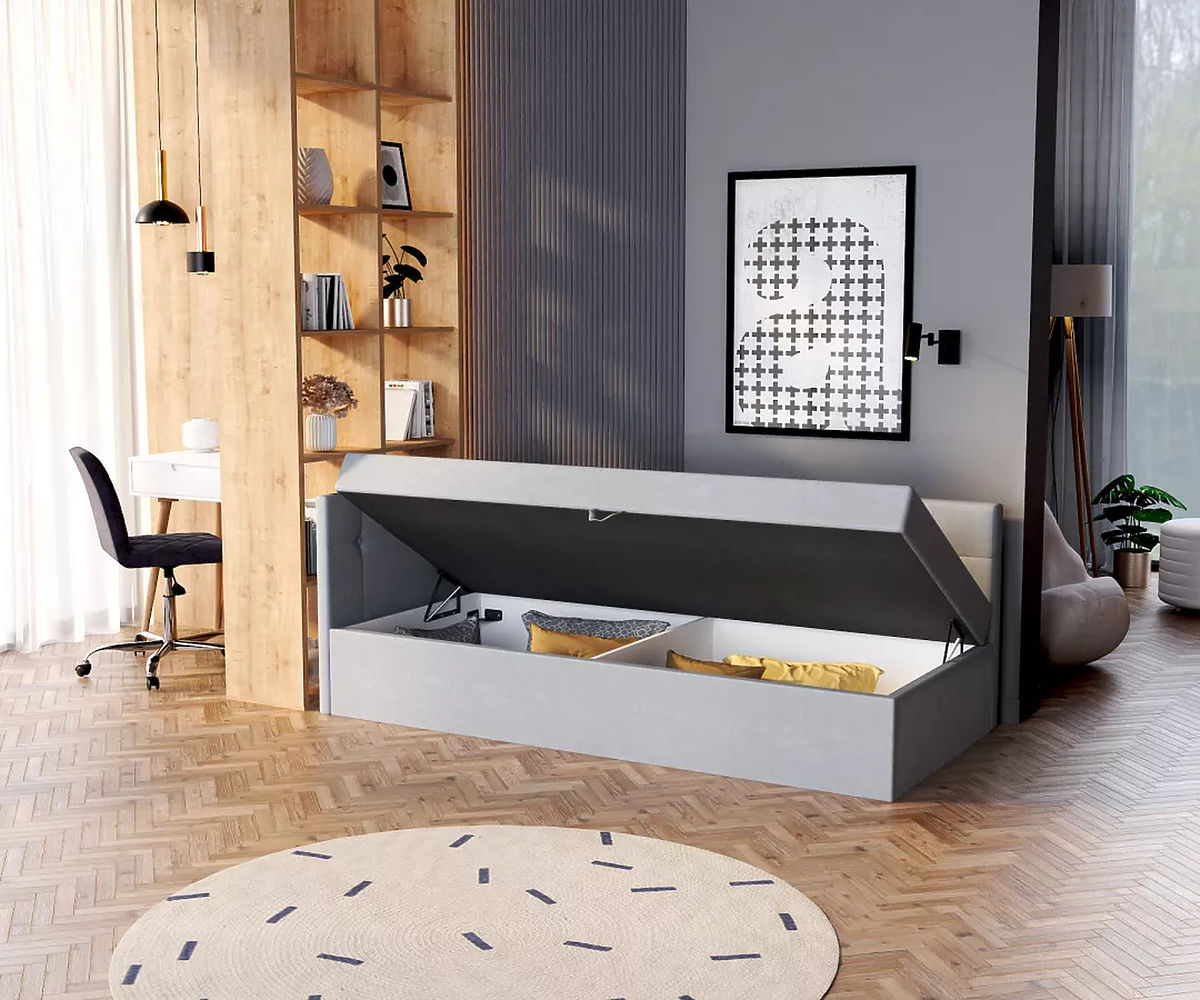 Moderna oblazinjena postelja BILLY dimenzij 200 x 90 cm je odlična izbira za tiste, ki iščejo stilsko pohištvo za svoje spalnice. Poleg kakovostne pene vzmetnice s praktičnim ročajem za enostavno dviganje, postelja ponuja tudi shranjevalni prostor pod posteljo. Ta funkcionalnost omogoča shranjevanje različnih dodatkov za spalnico in pomaga ohranjati urejen videz spalnice.