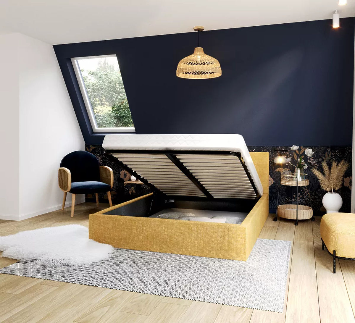 Oblazinjena postelja TULSA v rumeni barvi z merami 120 x 200 cm bo postala vpadljiv element, ki pritegne pozornost in hkrati ustvari prijeten in prijeten prostor za sprostitev. Rumena barva je povezana z veseljem, optimizmom in srečo. Je svež in izrazit, kar lahko vaši spalnici doda energijo in pozitivno razpoloženje. Ta barva je odlična izbira za tiste, ki želijo v svoj prostor vnesti sončen in topel občutek.