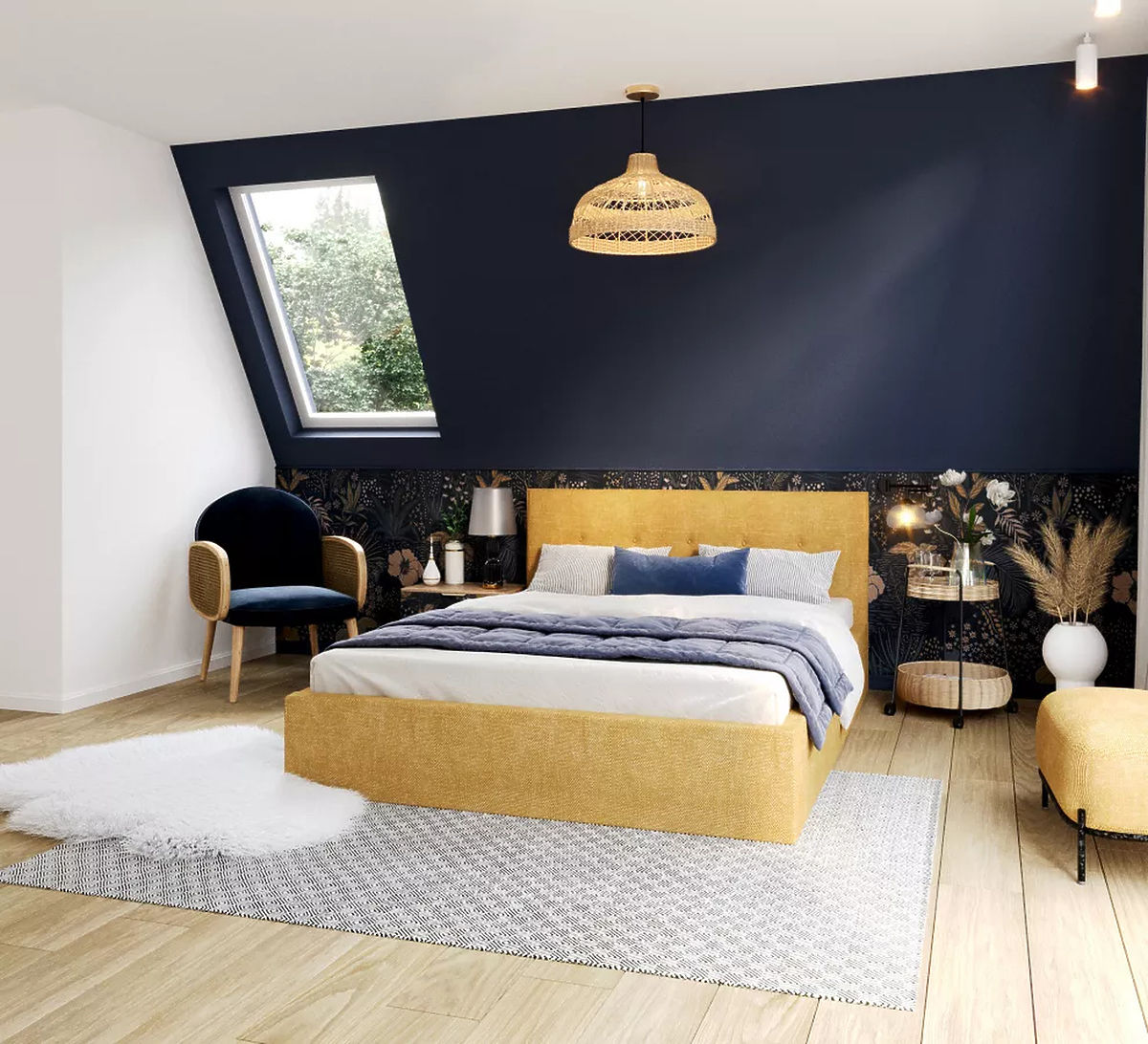 Izbira oblazinjene postelje TULSA v rumeni barvi z dimenzijami 180 x 200 cm je odlična odločitev za vašo sobo. Rumena barva je povezana z veseljem, srečo in optimizmom. V prostor prinaša sončno in pozitivno energijo. Rumena lahko doda prostoru tudi topel in prijeten občutek. Ta velikost postelje zagotavlja dovolj prostora za prosto gibanje ponoči. Dovolj prostora omogoča partnerjema udobno in neomejeno spanje, kar pripomore k splošnemu počitku.