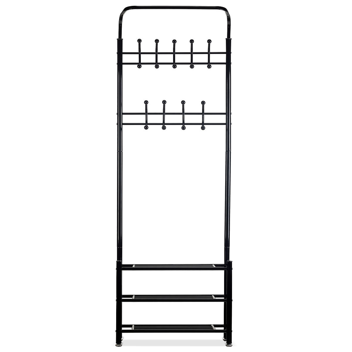 V zgornjem delu sta dve vrsti z 18 obešalniki , ki so zaradi velikega števila kavljev odlični za domače garderobe, pisarne ali čakalnice. Stojalo na dnu ima .. več