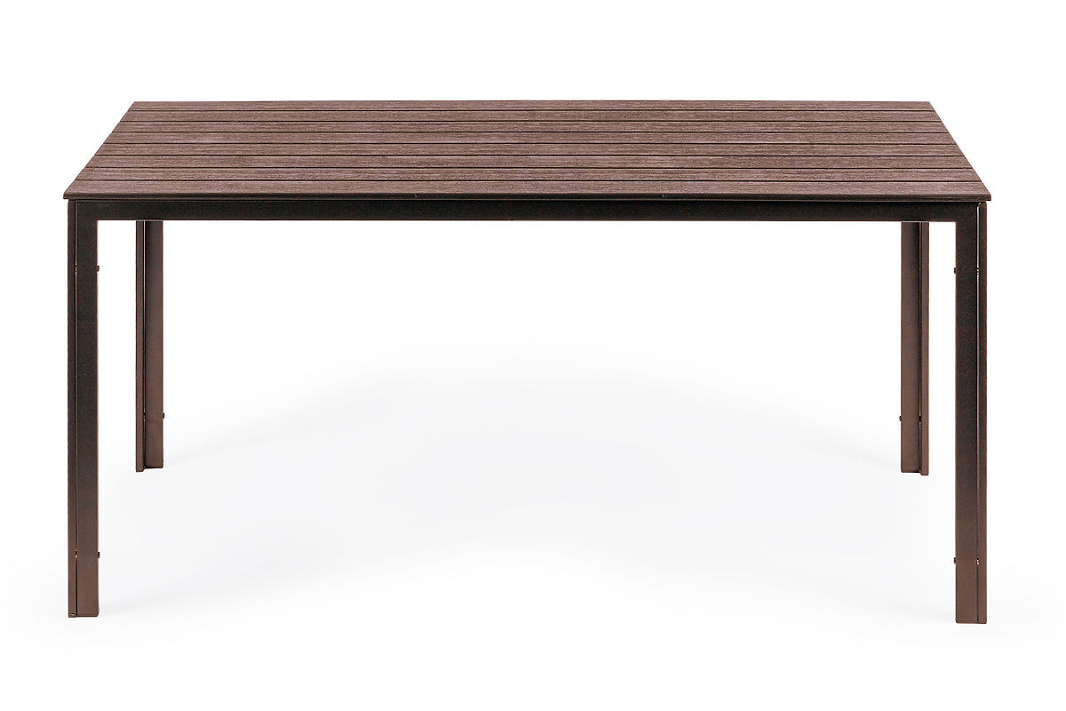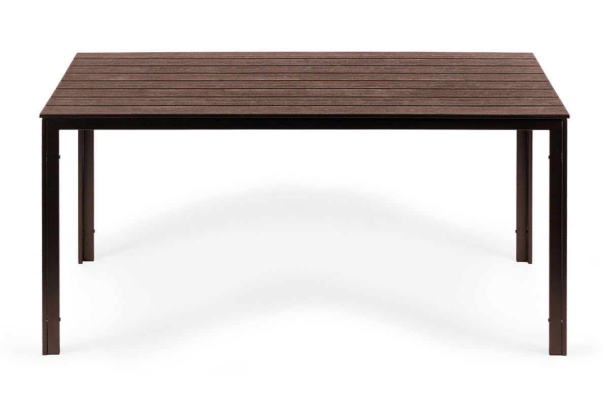 Vrtna miza BASIC je izdelana iz kovinskih profilov, zaradi česar je celotna konstrukcija stabilna in se ne deformira kot plastične mize. Mizna plošča ima spodaj dodatne prečne profile, ki ji dajejo togost in zagotavljajo ustrezno odpornost. Površina mizne plošče je prekrita z vzorcem, ki posnema teksturo lesa.
