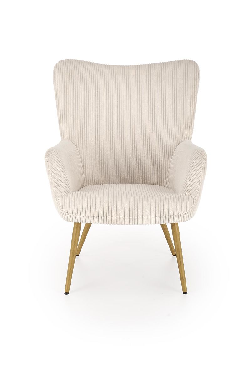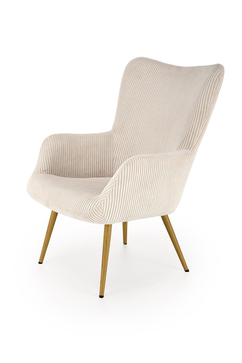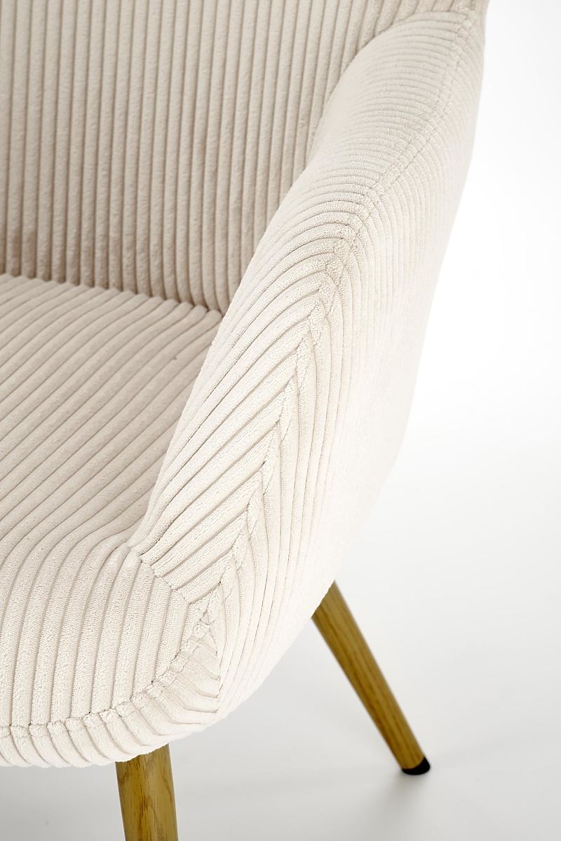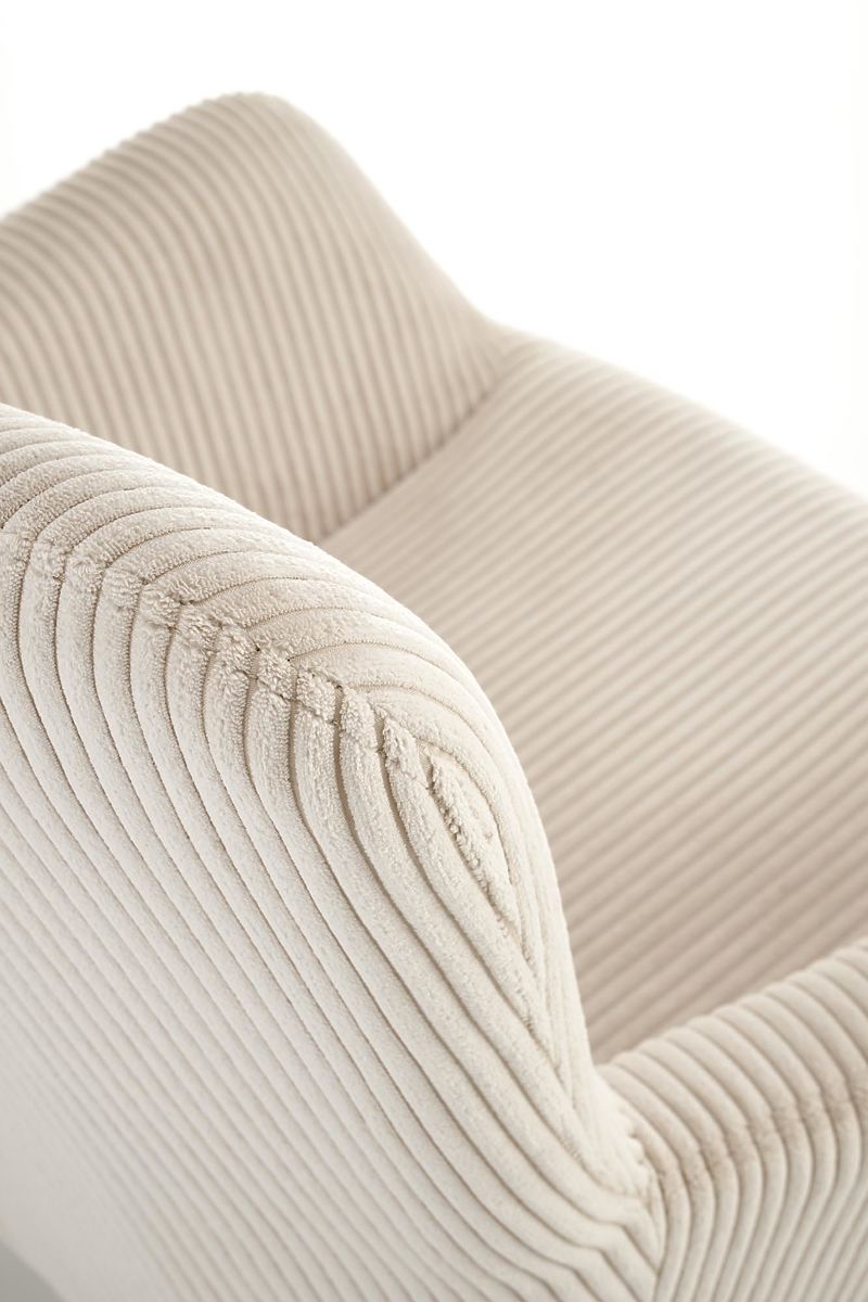 Velvet v krem barvi daje fotelju mehak in hkrati prefinjen videz. Ta tkanina ni samo prijetna na dotik, ampak je tudi trpežna in enostavna za vzdrževanje, kar zagotavlja dolgo življenjsko dobo vašega stola.