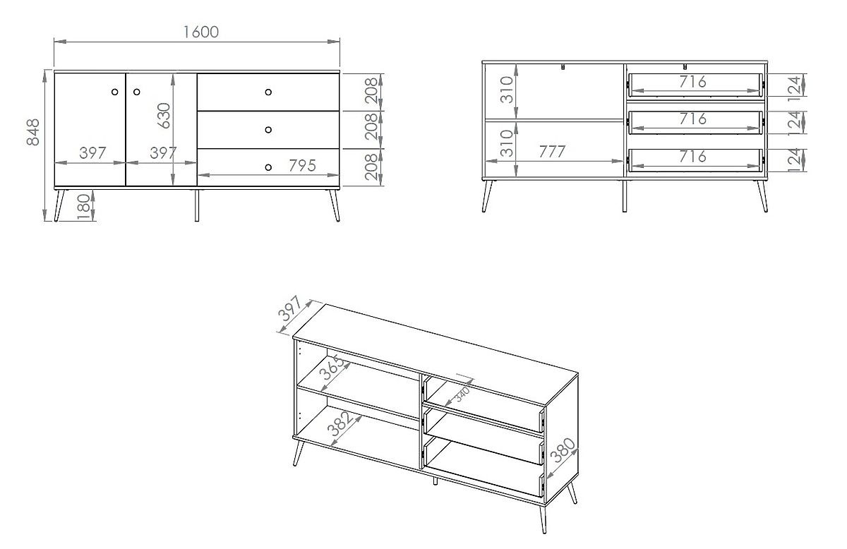 Večja komoda Forest je kombinacija elegance, praktičnosti in modernega dizajna. Temno zelena barva prinaša mir in harmonijo ter v kombinaciji z zlatimi ročaji in nogicami predstavlja edinstven kos pohištva. Popolnoma se prilega tako moderni notranjosti kot bivanju v retro stilu.