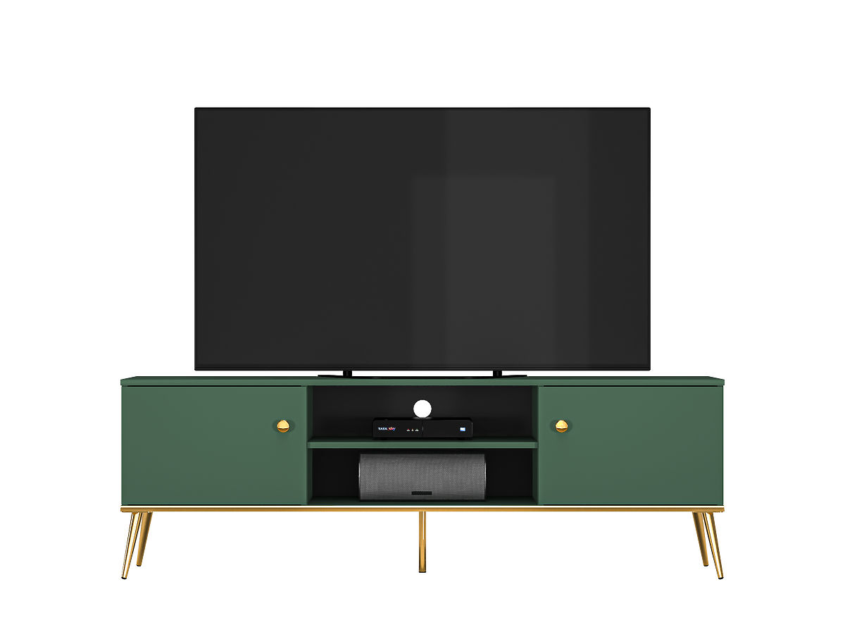 Čudovito TV stojalo Forest ni le estetsko impresiven kos pohištva, ampak je tudi zelo praktičen. Zahvaljujoč velikemu odlagalnemu prostoru zagotavlja dovolj prostora za različne elektronske naprave, knjige ali druge stvari. Edinstven dizajn in barvna kombinacija temno zelene in zlate bo v vaš dom vnesla eleganco, mir in harmonijo. Popolnoma se prilega tako moderni notranjosti kot bivanju v retro stilu.