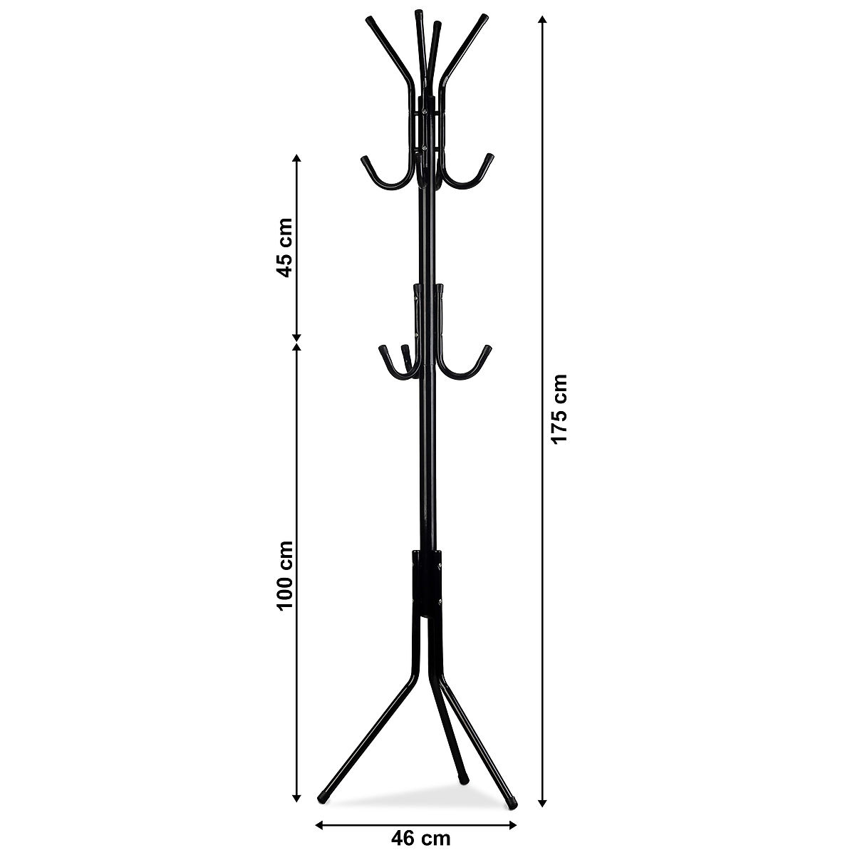 VELIKO PROSTORA ZA OBLAČILANa vrhu so štiri roke, na katere lahko obesite dve jakni. Na sredini višine so dodatni kavlji, primerni za kape, dežnike ali torbe.