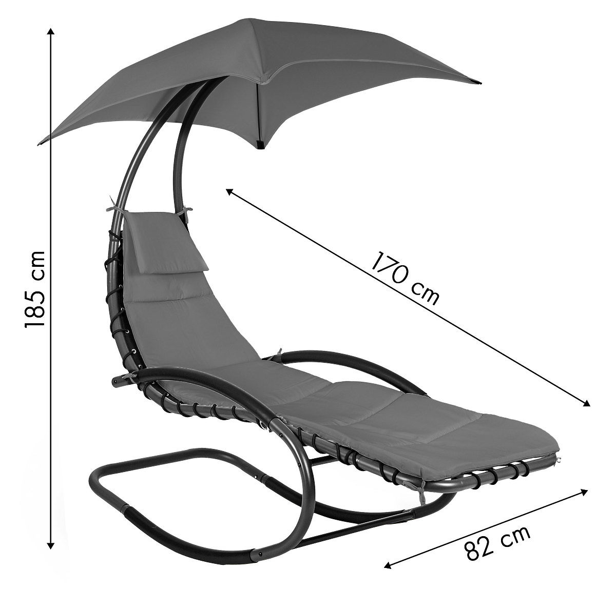 Velika nastavljiva strešica bo zagotovila prijetno senco v vročih dneh, rahlo guganje pa nam bo polepšalo čas preživet zunaj.