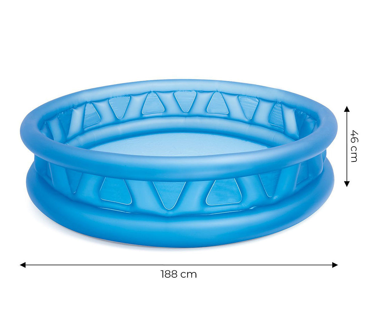 Bazen s premerom 188 cm je prostor za zabavo za več otrok, globina 46 cm je primerna za majhne otroke in zagotavlja varno zabavo. Bazen po videzu spominja na zamašek steklenice, ta oblika je omogočila pridobitev treh neodvisnih zračnih komor, zaradi česar so robovi dovolj utrjeni. Bazen je enostaven za čiščenje in ob pravilnem shranjevanju bo služil več sezon. Z njim se vaši otroci zagotovo ne bodo dolgočasili.