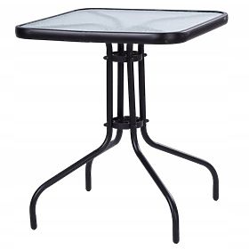 DOBRO OBLIKOVANA VRTNA MIZAKvadratna plošča dimenzij 60x60 cm zagotavlja prostor za 4 osebe, ki lahko nanjo udobno odložijo svoje pijače ali celo jedo. Kovinska konstrukcija zagotavlja stabilnost in plošča iz kaljenega stekla zagotavlja, da je miza trpežna in varna tudi pri večjih obremenitvah.