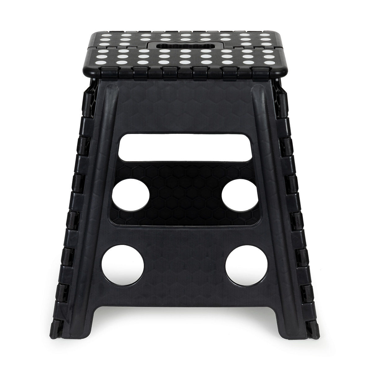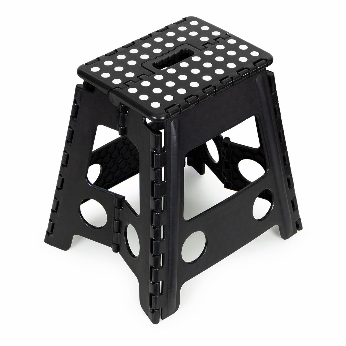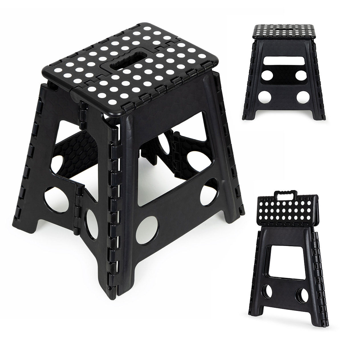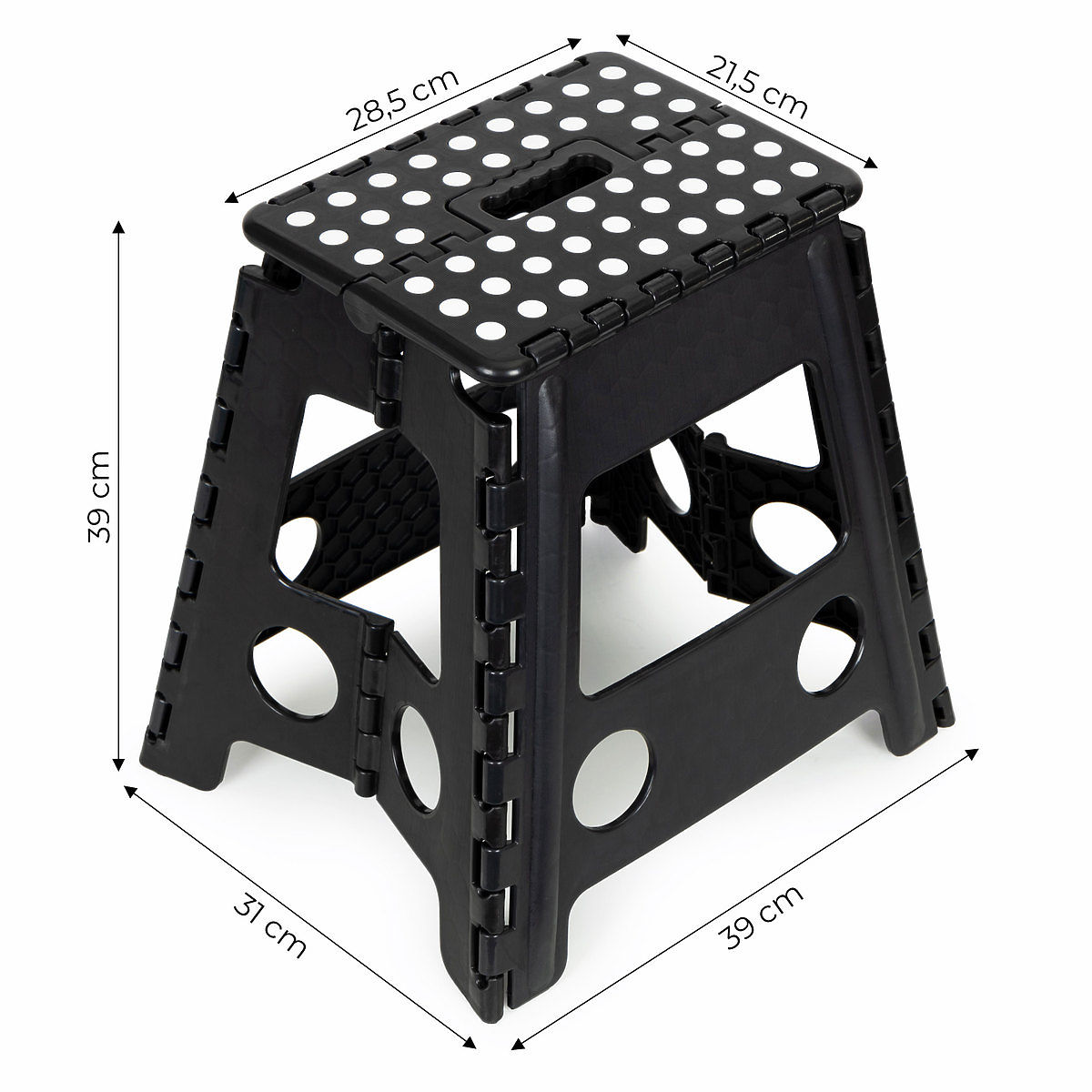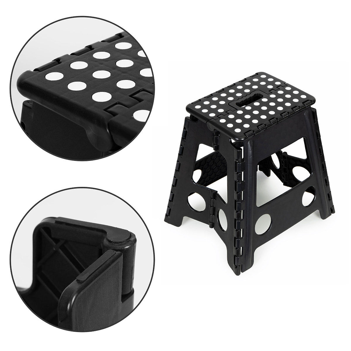 NEDRSEČI ELEMENTIVarnost je za nas prioriteta. Naš zložljiv stolček je opremljen z gumijastimi, nedrsečimi nogicami, ki zagotavljajo stabilnost na različnih vrstah površin. Zgornji del - platforma je zaključena z gumijastimi elementi, ki, tako kot nogice, preprečujejo drsenje pri vstopu na stolček. Tako se boste pri uporabi počutili varno.