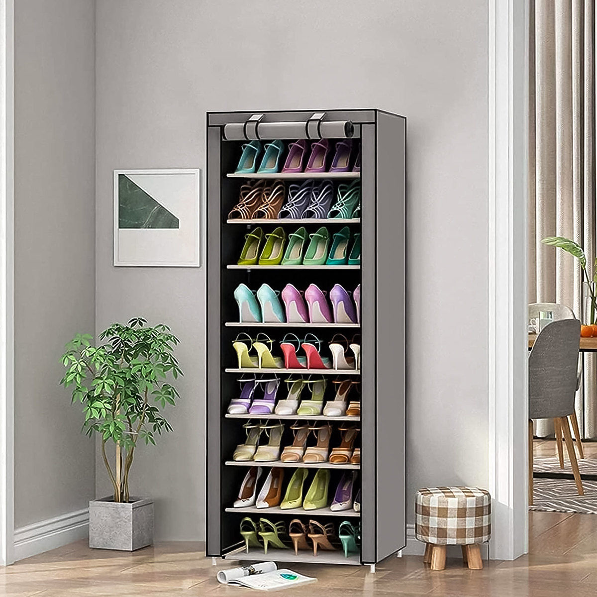Tekstilna omara je idealna rešitev za tiste, ki iščejo udoben in funkcionalen način shranjevanja oblačil, dodatkov in čevljev. Ta večnamensko pohištvo zagotavlja dovolj prostora in hkrati ostaja stilski dodatek vaši spalnici, kopalnici ali predsobi.