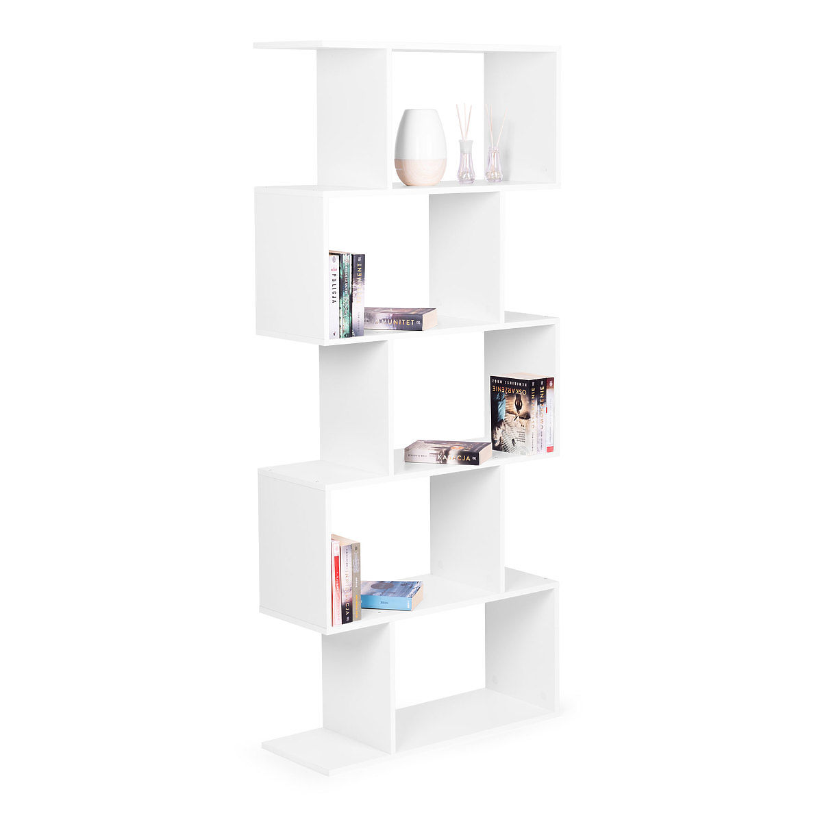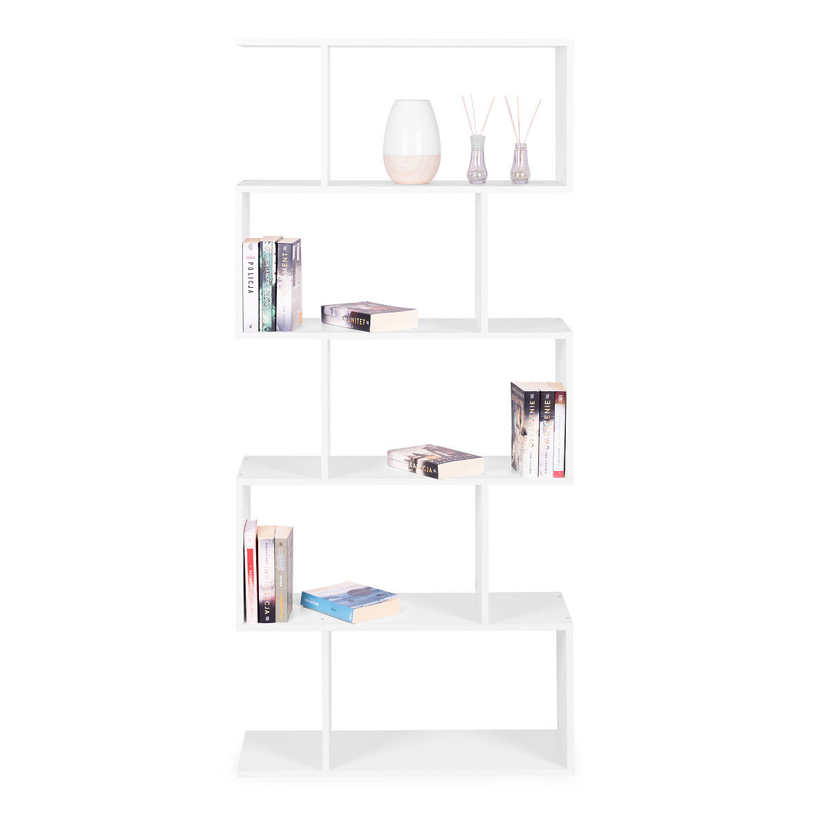 Moderna bela polica s 5 policami za dnevno sobo, predsobo ali pisarno. .. več