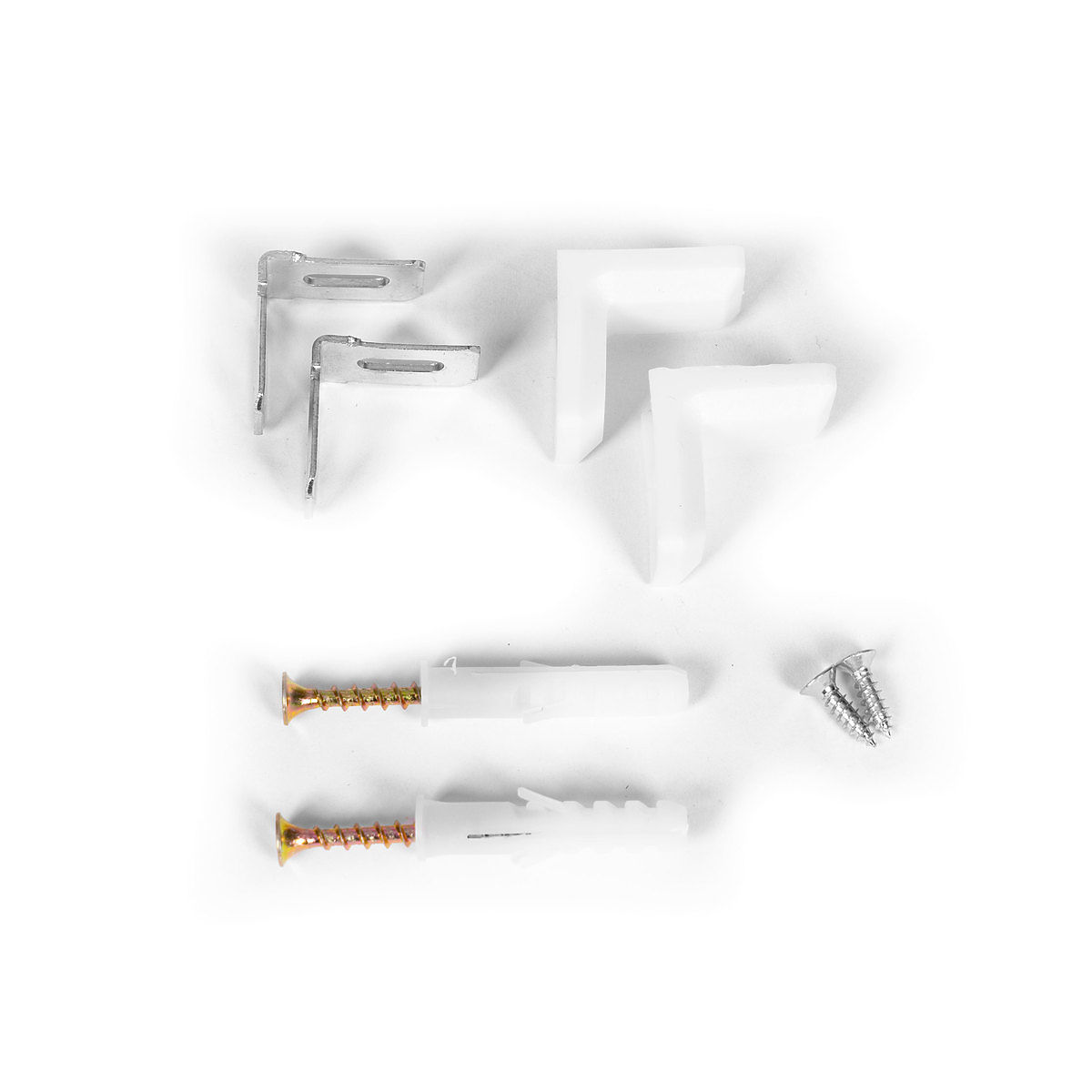 MONTAŽA NA STENOV kompletu so posebni kovinski kotniki in vijaki, s katerimi lahko polico pritrdite na steno. To je še posebej pomembno, če imate majhne otroke, saj vam varnostni ukrepi omogočajo, da se ne bojite za njihovo varnost.
