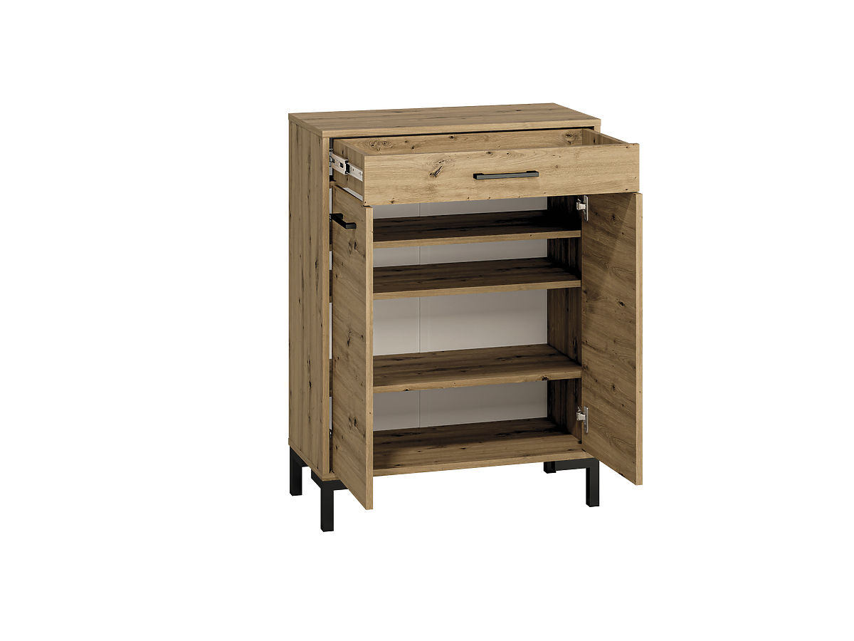 Omarica za čevlje Nevio je idealna rešitev za shranjevanje vaših čevljev z eleganco in stilom. Hrastov dekor daje omari prijeten naraven videz, ki se odlično prilega modernim in tradicionalnim interierjem. Ta eleganten in praktičen dodatek k vaši predsobi z veliko prostora za shranjevanje vam omogoča, da organizirate svoje čevlje in poskrbite, da bo vaš vhod čist in urejen.