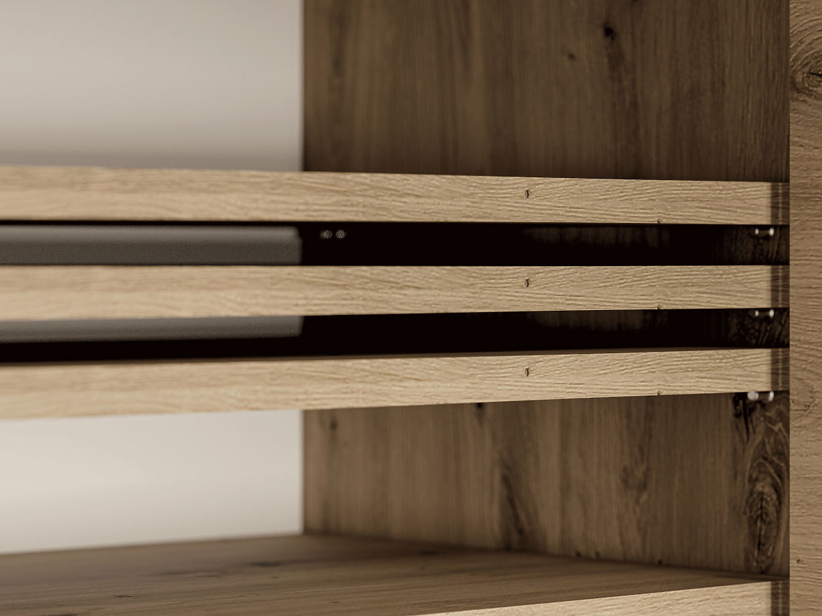 Omarica za čevlje Nevio je idealna rešitev za shranjevanje vaših čevljev z eleganco in stilom. Hrastov dekor daje omari prijeten naraven videz, ki se odlično .. več