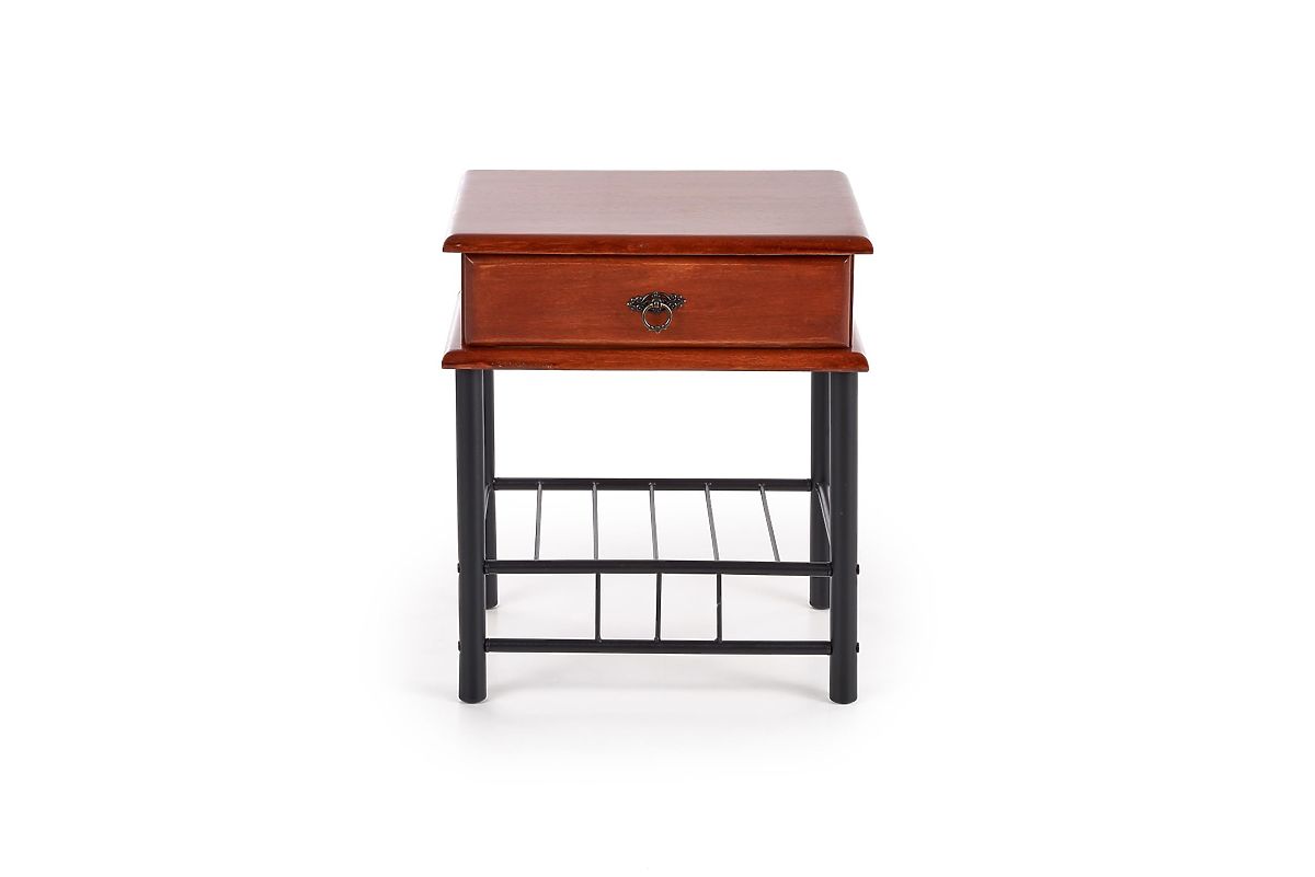 Izdelana iz prvovrstnega masivnega lesa in dopolnjena z robustnimi jeklenimi elementi, je ta omarica ne le vizualno privlačna, temveč tudi zelo trpežna. Površinska obdelava v odtenku antične češnje poudarja čudovito teksturo lesa, medtem ko črne pobarvane jeklene noge in ročaji dajejo omarici industrijski videz.