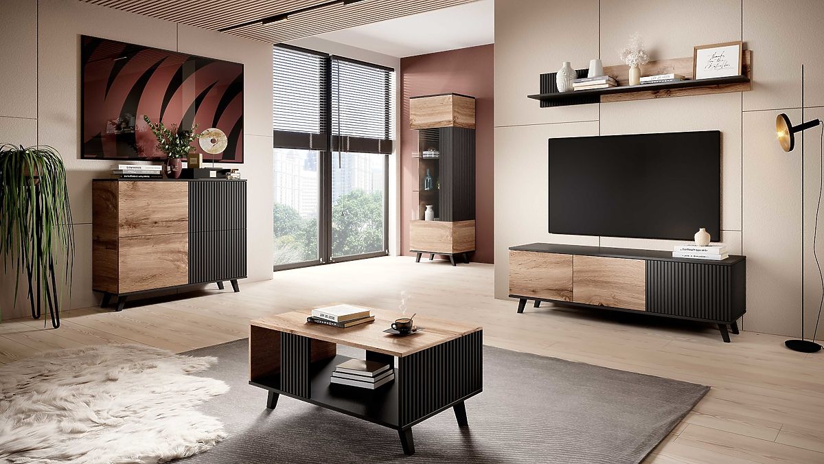 Barva: Kombinacija hrasta wotan in črne barve daje omarici moderen in sofisticiran videz, ki se zlahka vključi v kateri koli interier.