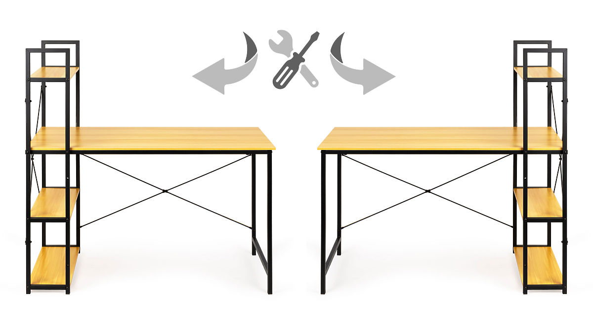 Plošča mize je prekrita z furnirjem v svetlem hrastovem odtenku in njena velika površina omogoča udobno pisarniško delo.