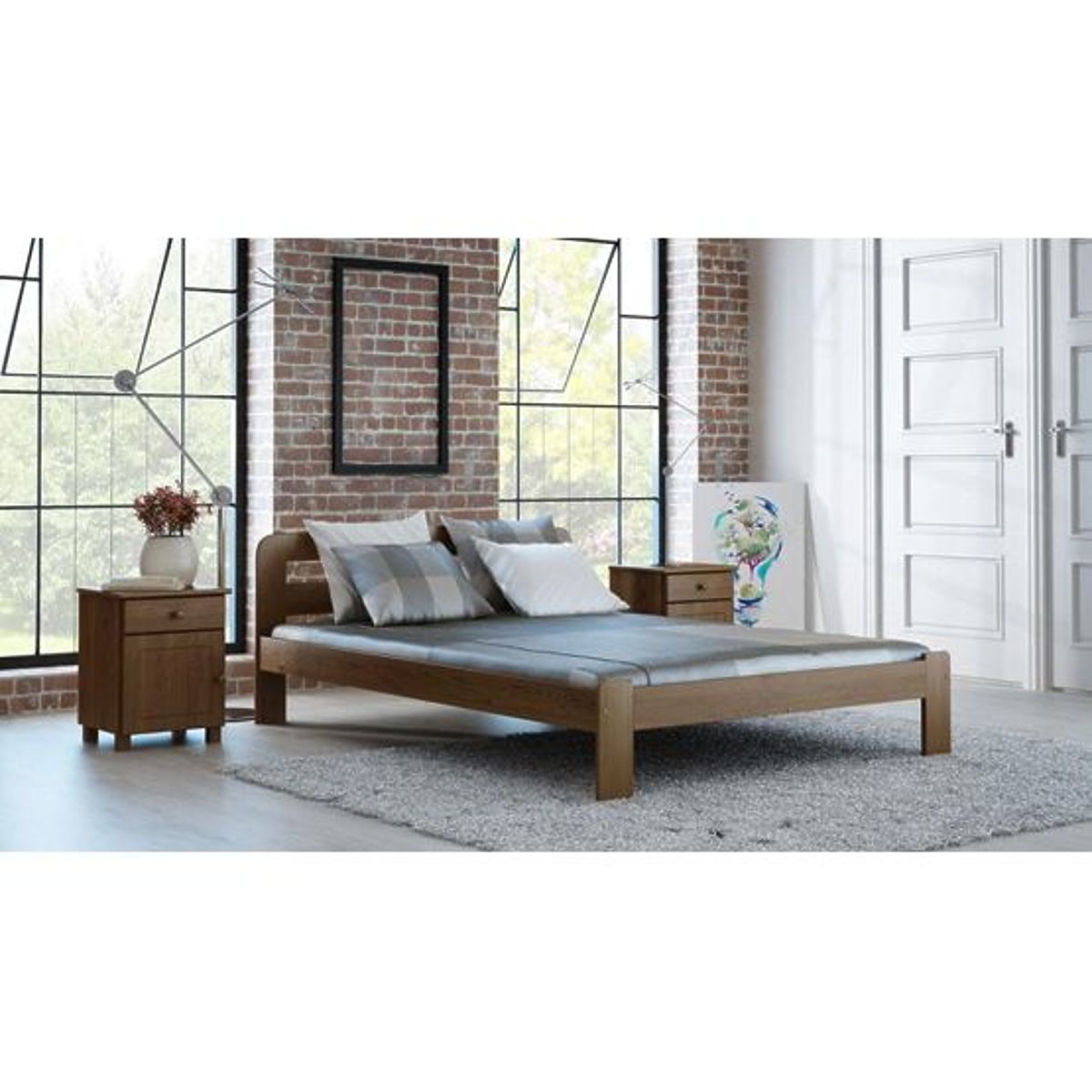 Lesena postelja SARA v hrastovem dekorju za udobno spanje. .. več