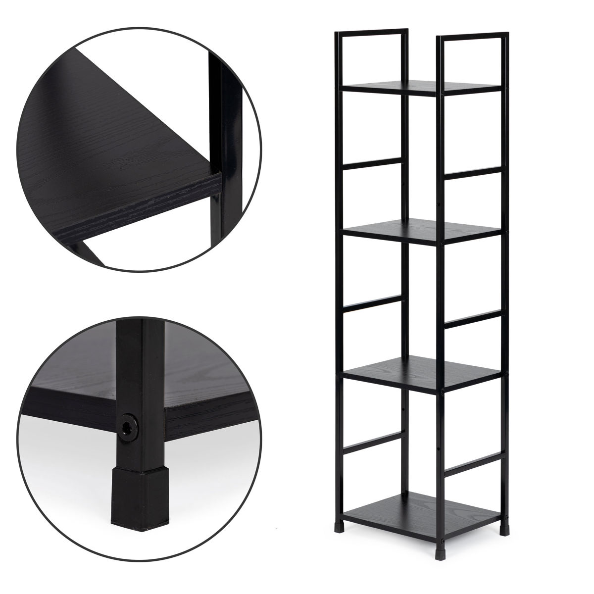 Lesena polica s kovinskim okvirjem in 4 policami za različne prostore. .. več