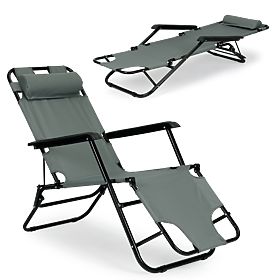 Lukahome.si » Vrtno pohištvo / Vrtni ležalniki / Vrtni ležalnik z vzglavnikom zložljiva konstrukcija siva MultiGarden