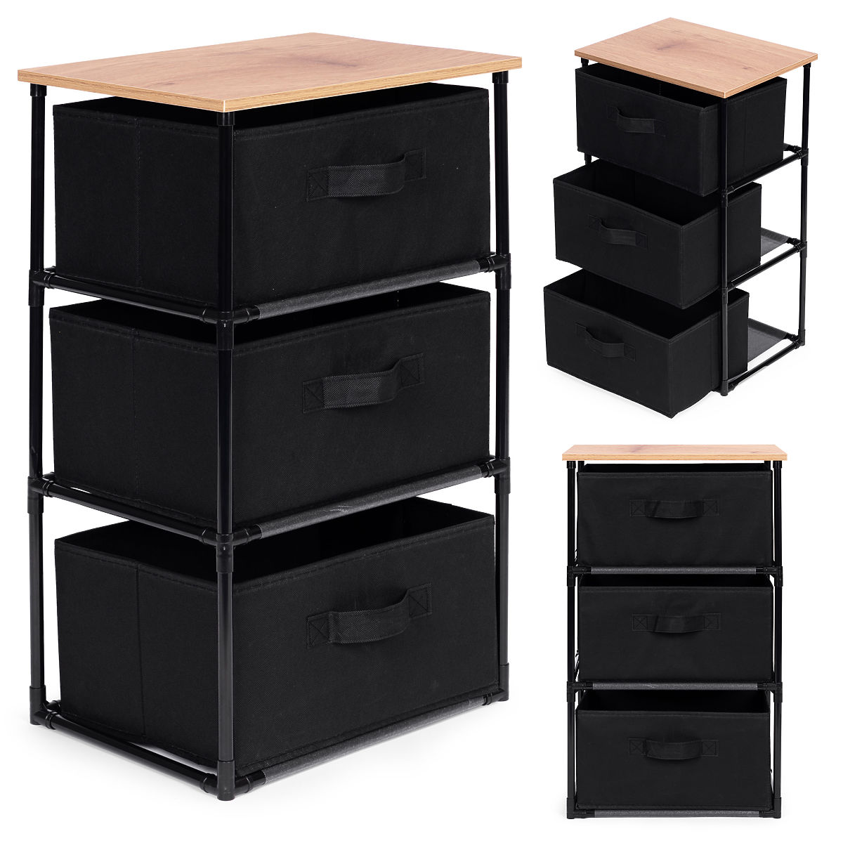 Lukahome.si » Kopalnica in stranišče / Kopalniški dodatki / Tekstilna omarica regal organizator z odstranljivimi koši 3 nivoji loft črna ModernHome