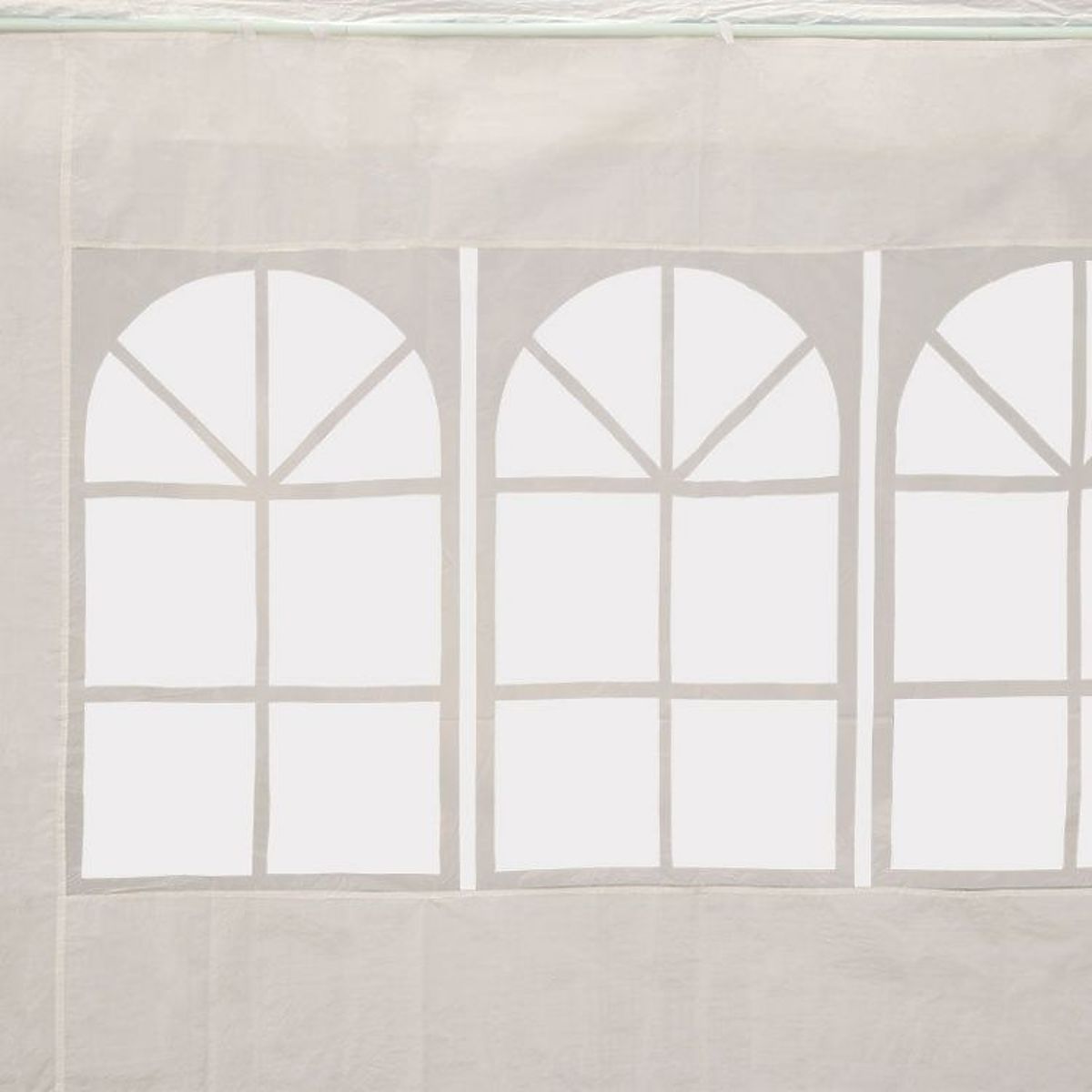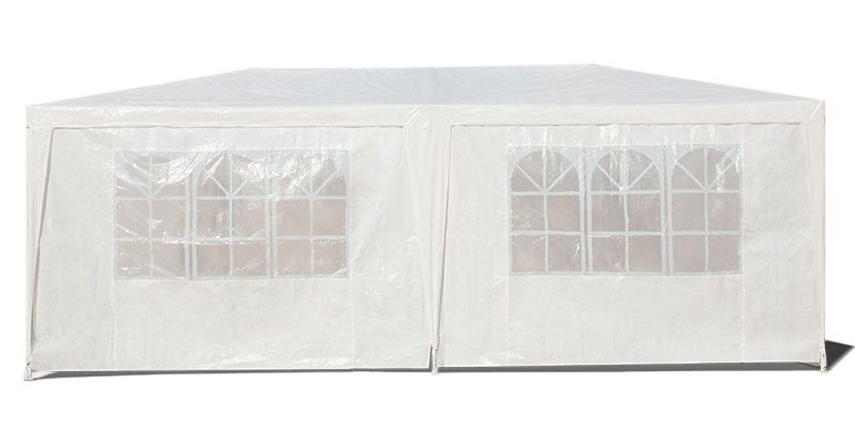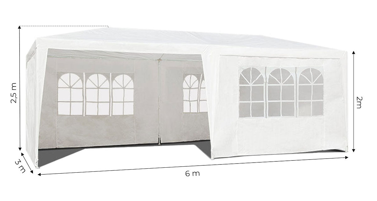 ODPORNA KONSTRUKCIJAOgrodje šotora je izdelano iz močnih, kovinskih cevi praškasto lakiranih, s premerom 32/25/25 mm, kar zagotavlja stabilnost in odpornost proti koroziji. Trdna konstrukcija zagotavlja trajnost tudi pri intenzivni uporabi. Vsaka noga šotora je pritrjena na tla s pomočjo klinov, kar povečuje njegovo stabilnost. Streha in stene so izdelane iz trpežnega in vremensko odpornega polietilena z gramatura 100 g/m2 v elegantni beli barvi.