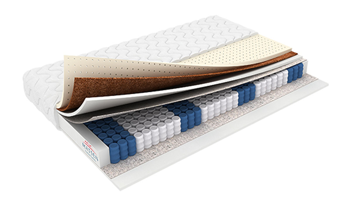 Vzmetnica ponuja visok udobje zahvaljujoč elastičnemu lateksu, ki se popolnoma prilagaja obliki telesa. Zaradi porozne strukture lateks odlično prezračuje, ne absorbira prahu in ima antibakterijske lastnosti. Kokosova plast utrjuje vzmetnico, podaljšuje njeno življenjsko dobo in zagotavlja stabilno podporo. Lateks je zelo trpežen material, ki se ne guba in ne deformira.