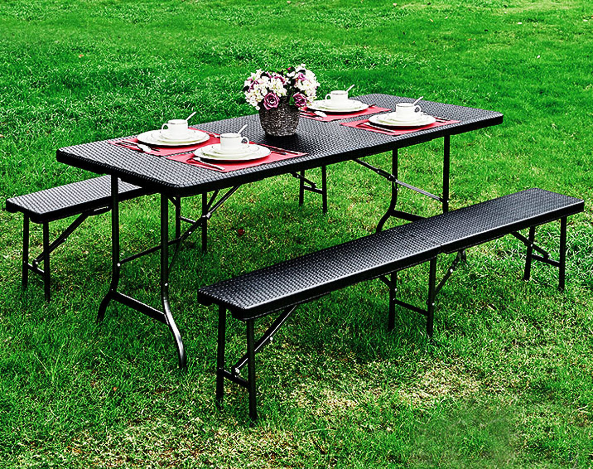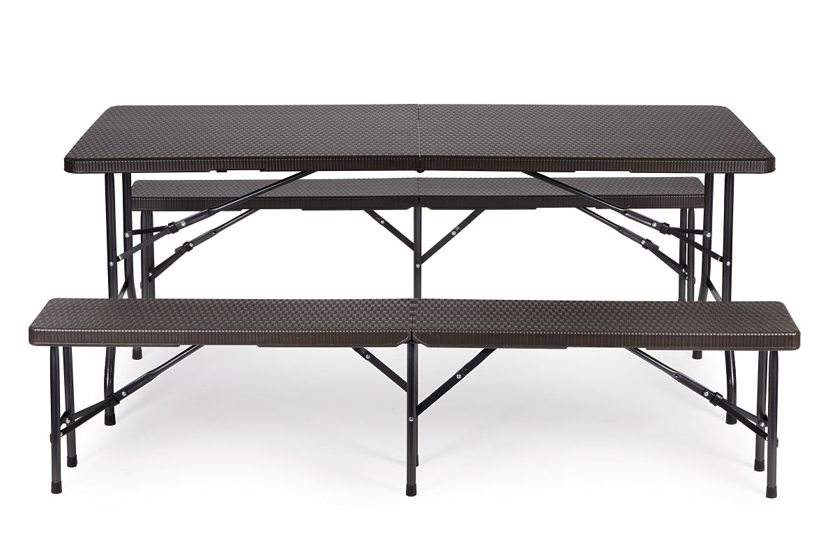 Lukahome.si » Vrtno pohištvo / Vrtni kompleti / Catering set banketna miza 180 cm 2 klopi ratan rjava ModernHome