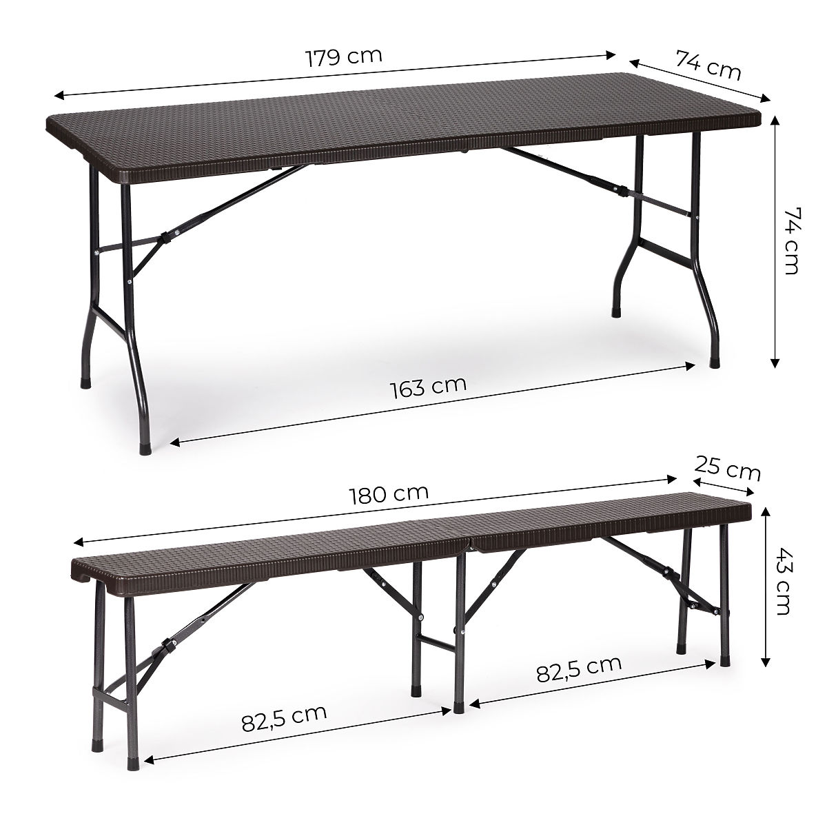 KLOPIZaradi trdne konstrukcije in uporabe materiala, odpornega na vremenske vplive, so odlične za vse vrste zunanjih dogodkov. Kovinski okvir omogoča, da klop uporabljajo 4 odrasle osebe.