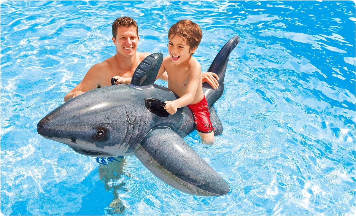 Napihljiv morski pes je nedvomno odličen obet za poletne radosti ob vodi ali v vašem bazenu. Njegova profilirana oblika zagotavlja udobje in varnost pri plavanju, največja obremenitev je 40 kg. Zaradi uporabe 2 trpežnih ročajev na hrbtu lahko vsakdo varno uživa v zabavi. Idealno za igre v vrtnih bazenih in na odprtih vodah.