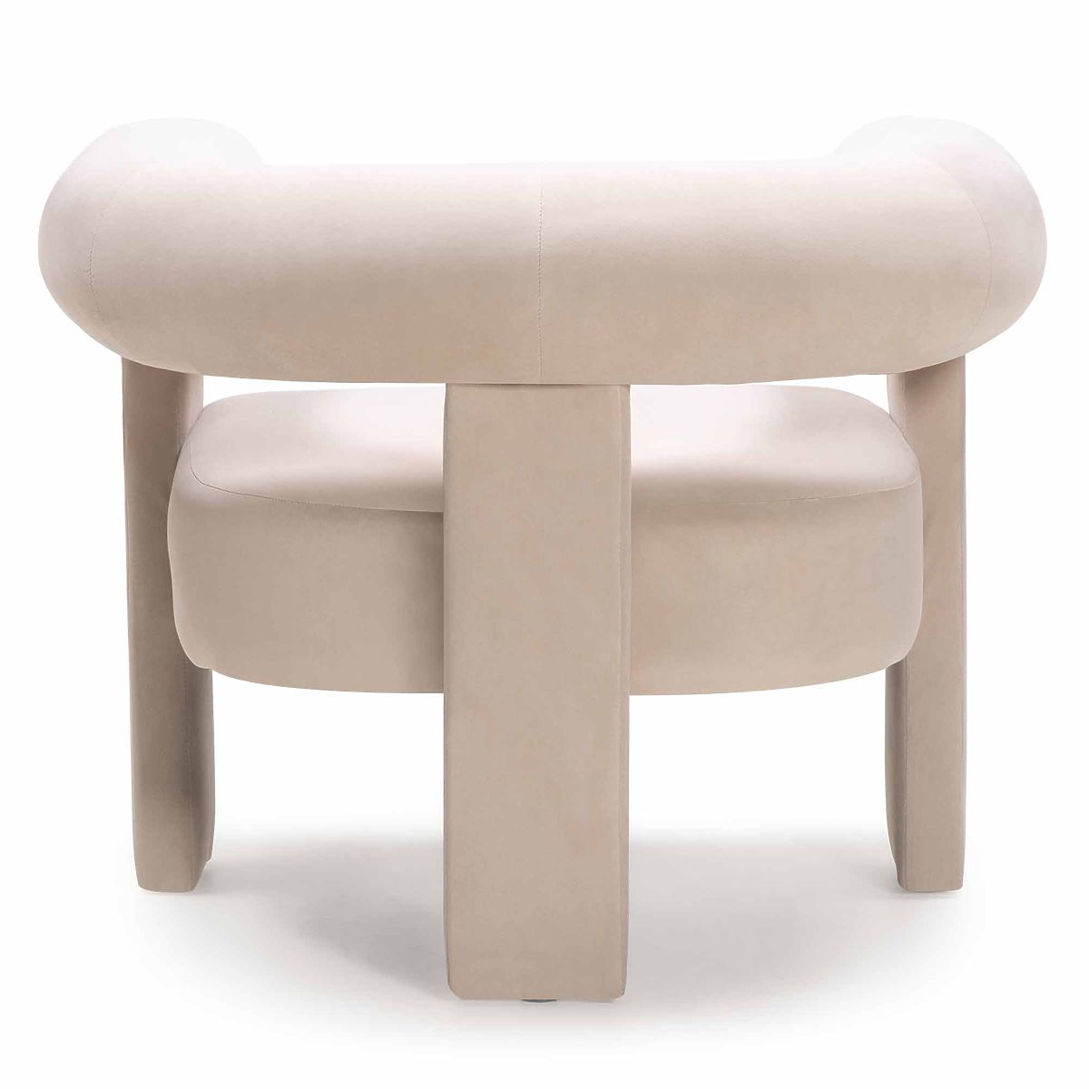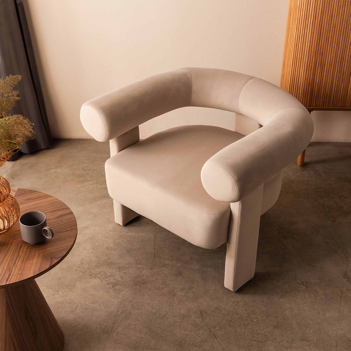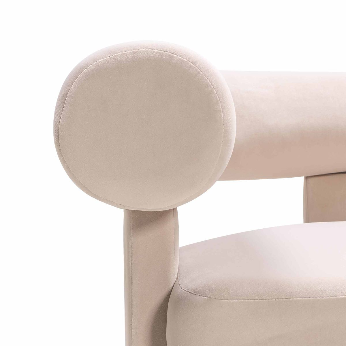Žametni stol Hella s svetlo bež barvo in zaobljenimi oblikami. .. več