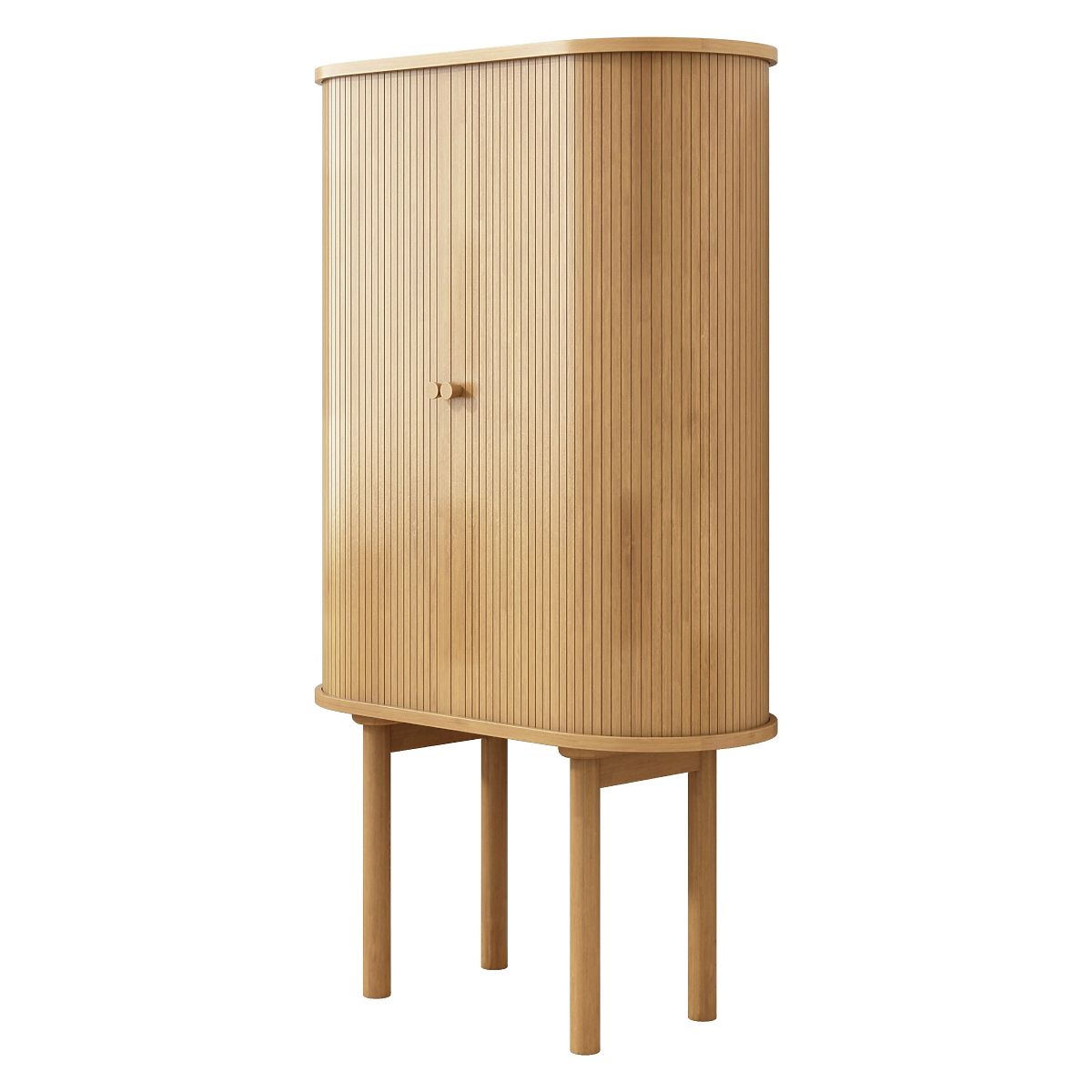 Ovalna komoda Clemente z drsnimi hrastovimi vrati in dekorativnimi letvicami. .. več