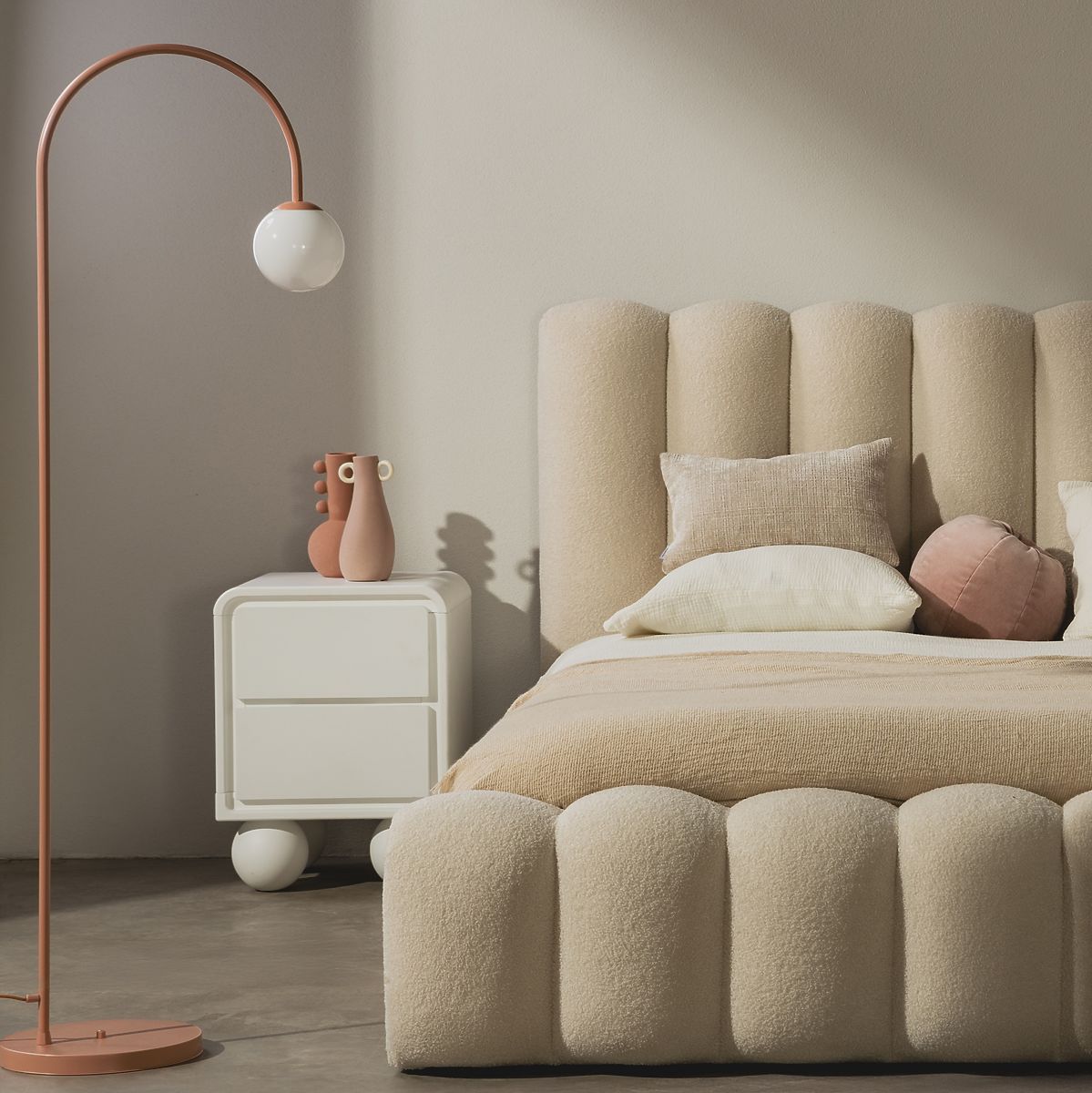 Lukahome.si » Mize in klubske mizice / Nočne omarice / Nočna omarica Lauria bela, zaobljena, nogice kroglice