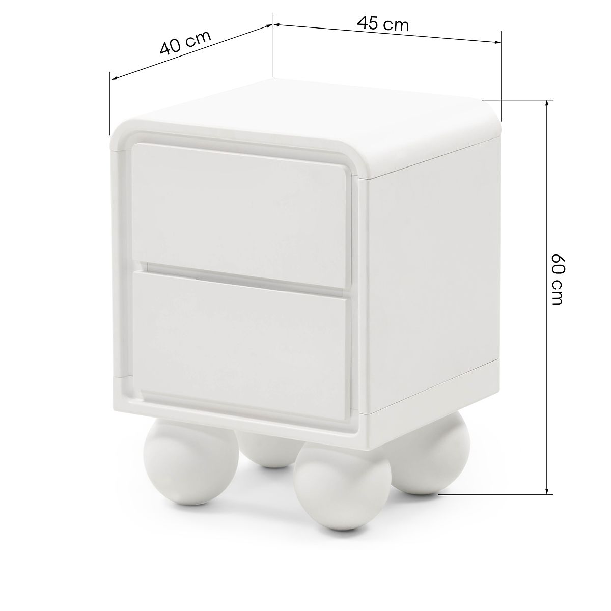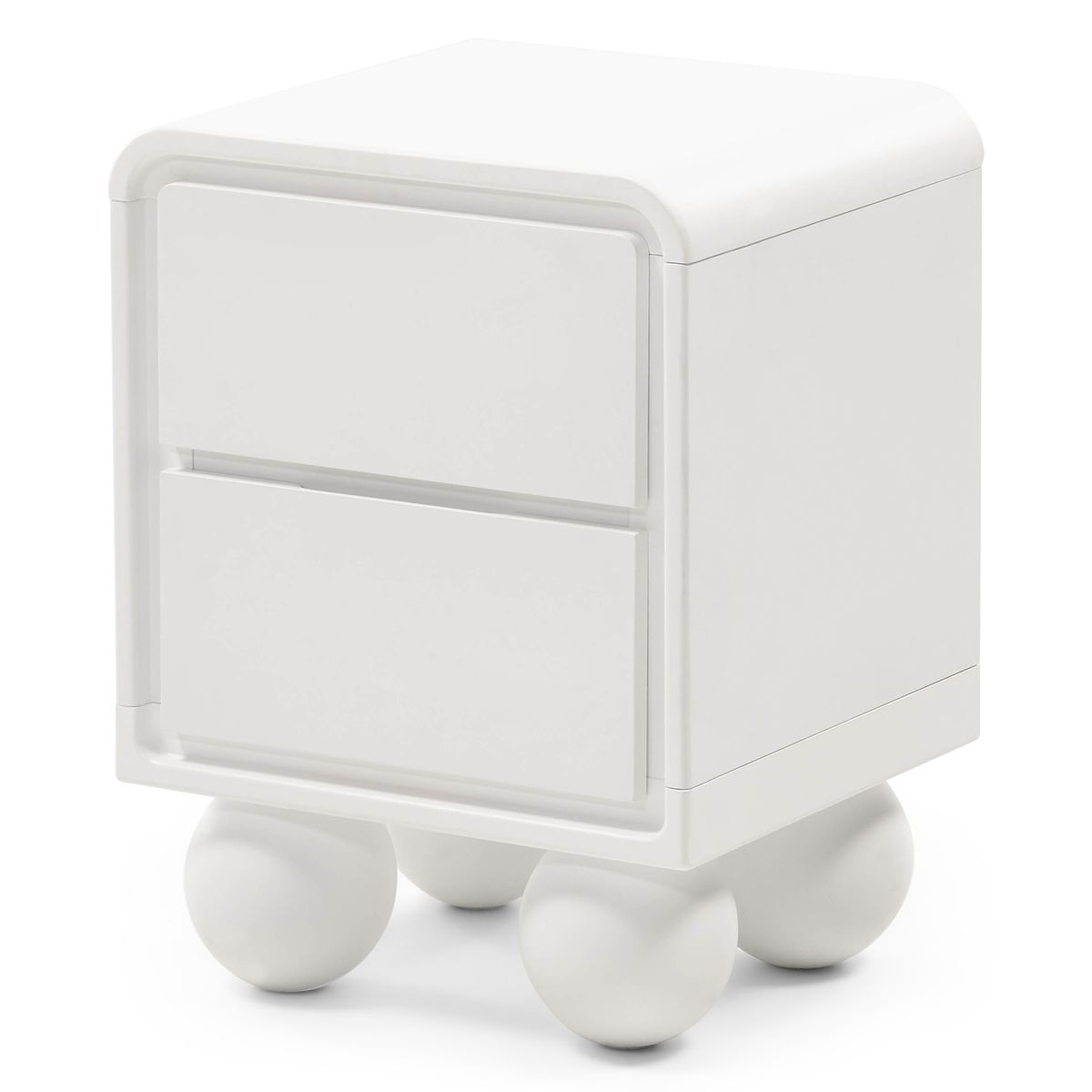 Bela nočna omarica Lauria z zaobljenimi robovi in nogicami kroglice. .. več