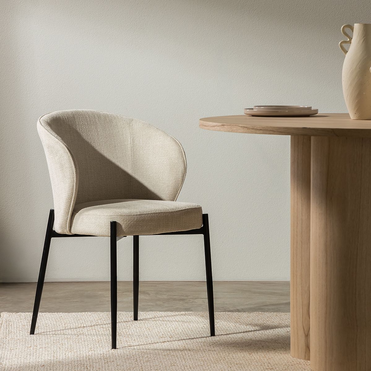 Stol Avery združuje eleganco in udobje s svetlo bež tkanino. .. več