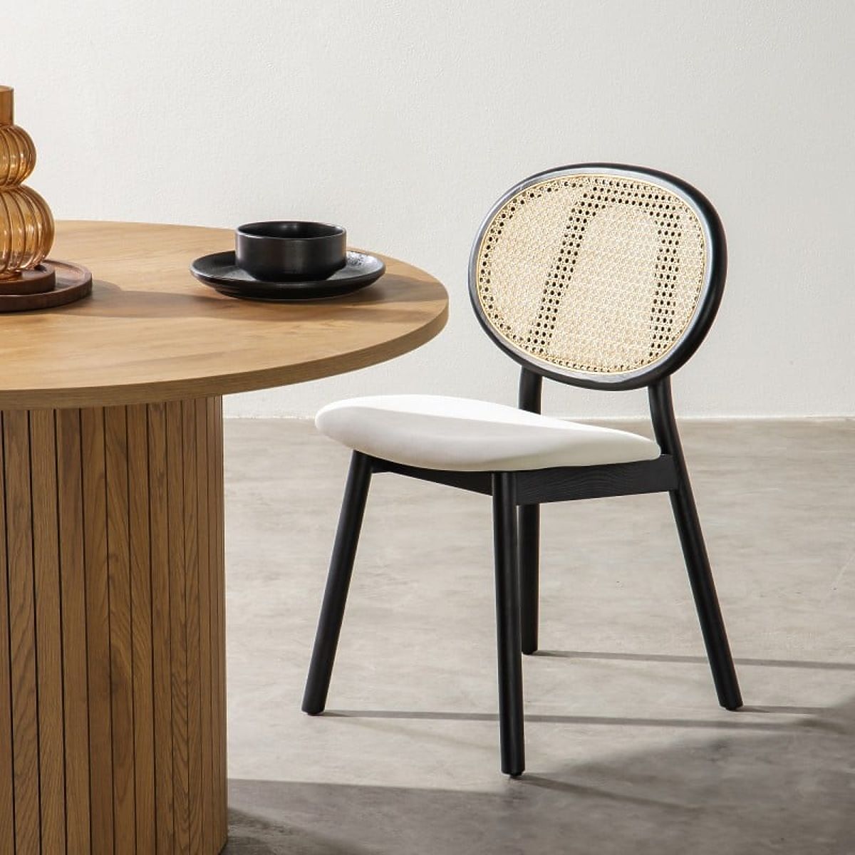 Lukahome.si » Jedilnica in kuhinja / Jedilni stoli / Leseni stol Monet z dunajsko pletenim, ratan, žamet, črna/ecru