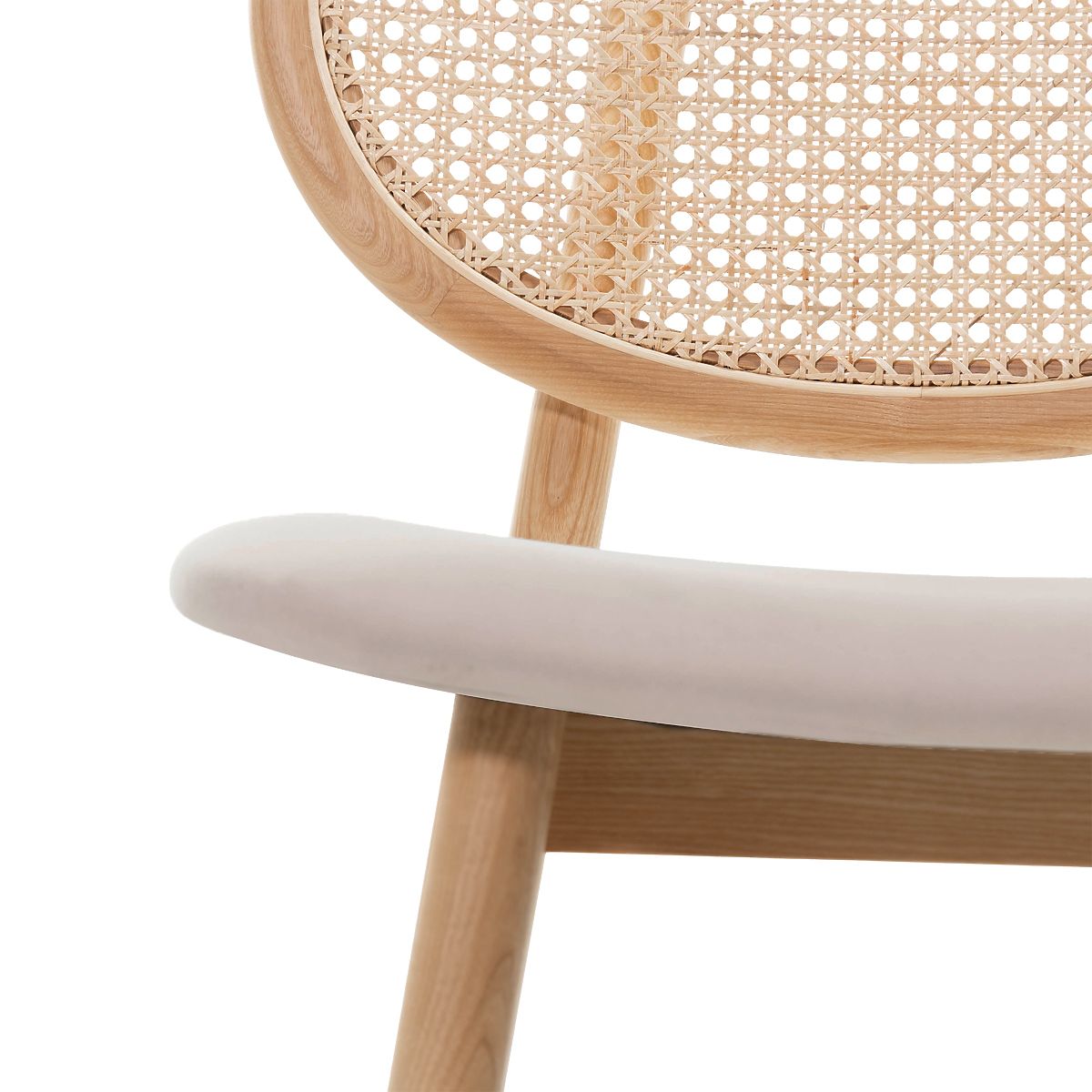 Leseni stol Monet z dunajsko pletenino in svetlo rjavim velurjem. .. več
