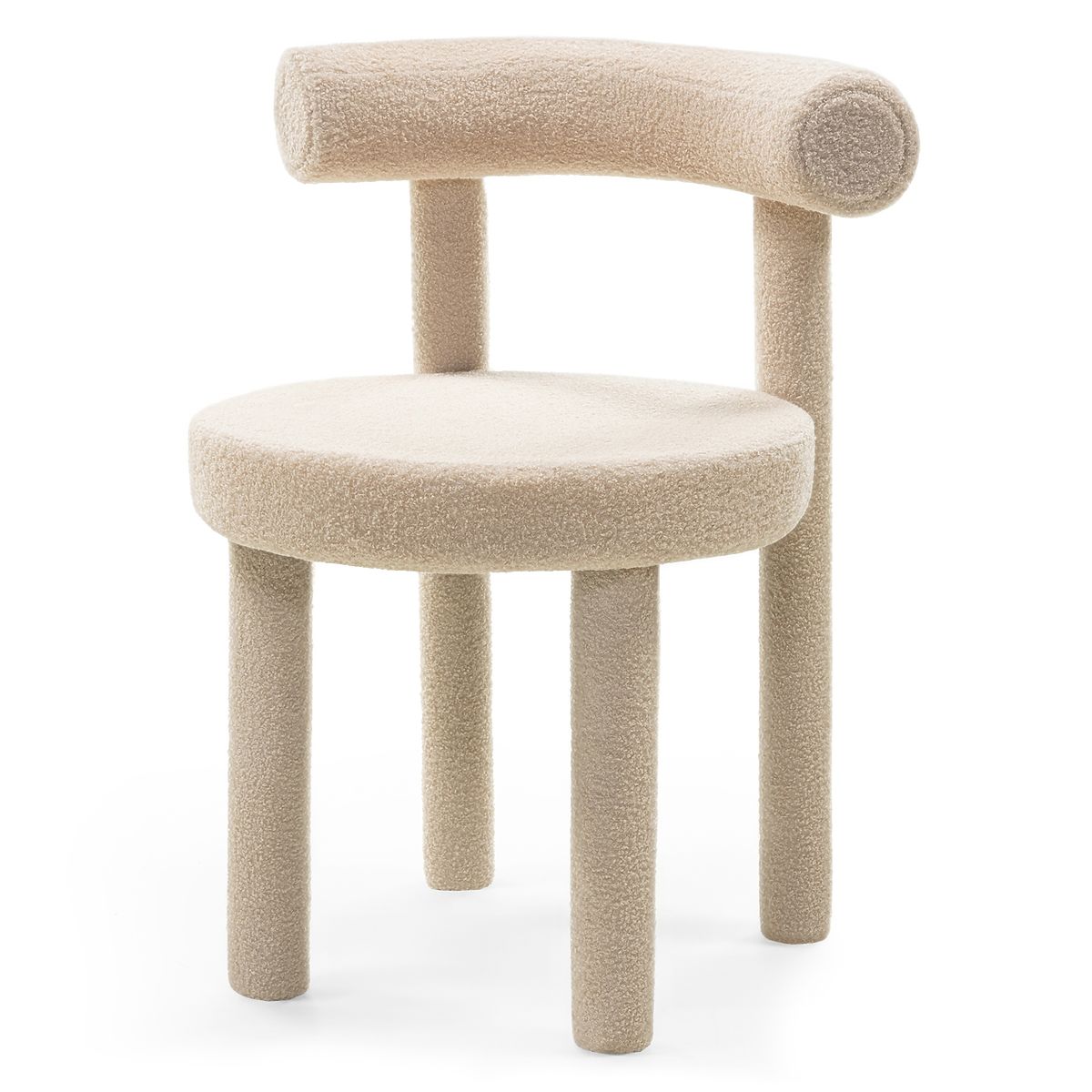 Stol Pedro 2.0 je utelešenje modernega dizajna, obogatenega z izjemnimi detajli, zaradi katerih je zanimiv element vsakega prostora. Njegovo zaobljeno, objemajoče naslonjalo ne le da dodaja eleganco, temveč ga tudi naredi priljubljeno mesto za trenutke počitka. Mehka tkanina boucle v bež barvi, ki prekriva celotno konstrukcijo stola, prinaša v notranjost udobje in nežen pridih elegance. Trdna konstrukcija stola zagotavlja trajnost, premišljen dizajn pa skrbi za ergonomijo, ki zagotavlja udobje pri sedenju dalj časa. Stol Pedro 2.0 je idealna izbira tako za dnevno sobo kot za jedilnico, kjer bo zagotovo pritegnil pozornost gostov s svojim edinstvenim slogom in udobjem.