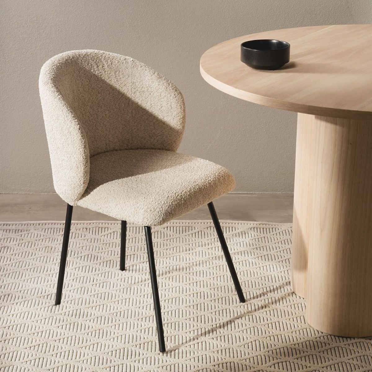 Stol Larisa združuje eleganco in udobje z bež oblazinjenjem in črnimi nogami. .. več