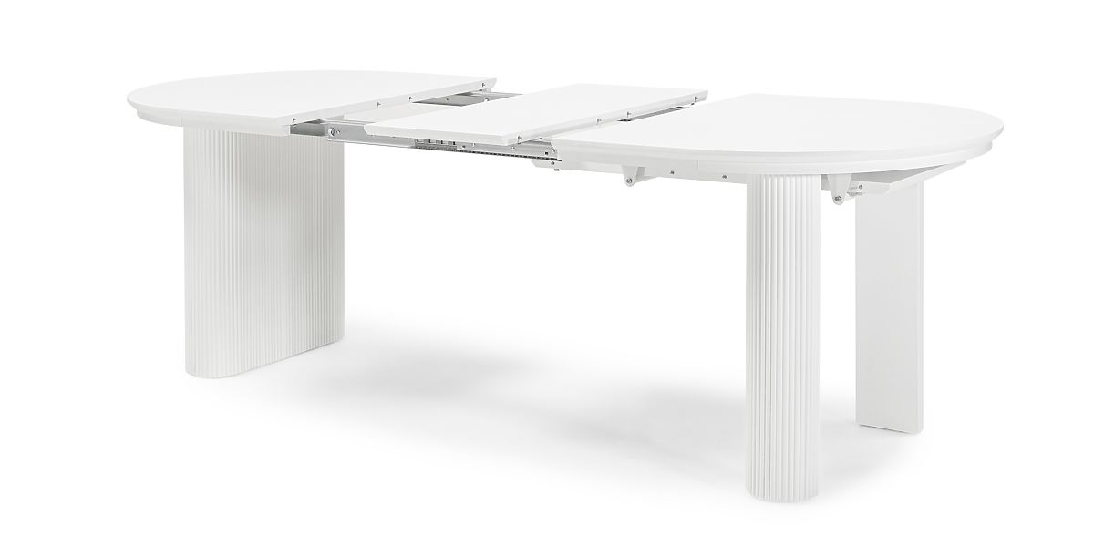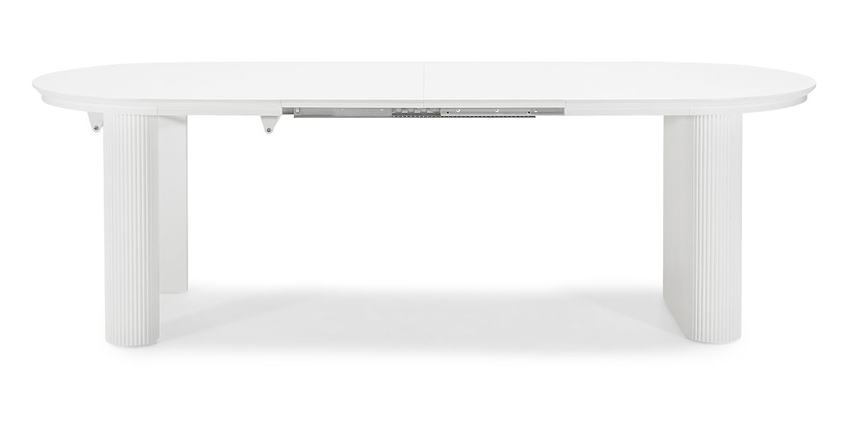 Lukahome.si » Jedilnica in kuhinja / Jedilnica mize / Raztegljiva miza Audrey 160-240 cm, ovalna, bela, z utori, zaobljene oblike